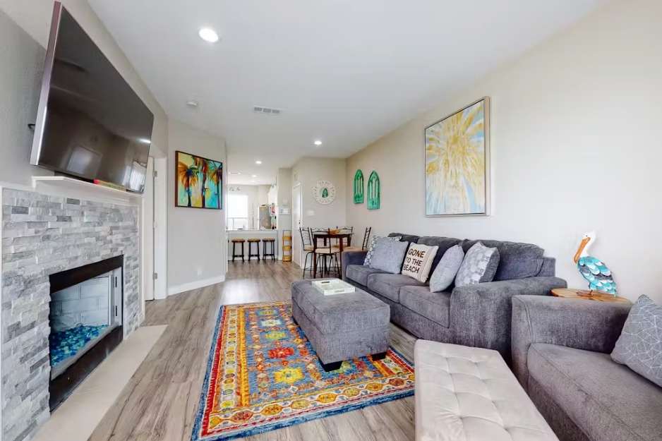 Welcome to the “Blue Gull!” You will find everything you need for a perfect beach getaway in this cozy 1 bedroom condo! We are perched on the 3rd floor and with that comes tall ceilings, a balcony with a view of Lake Padre, and a peaceful quietness. While the condo is within walking distance to the beach (5 minutes), you can also have a vacation without leaving the complex. The community offers many other amenities...hot tub, heated pool, sauna, fitness center, etc. What’s not to love?!?!!!