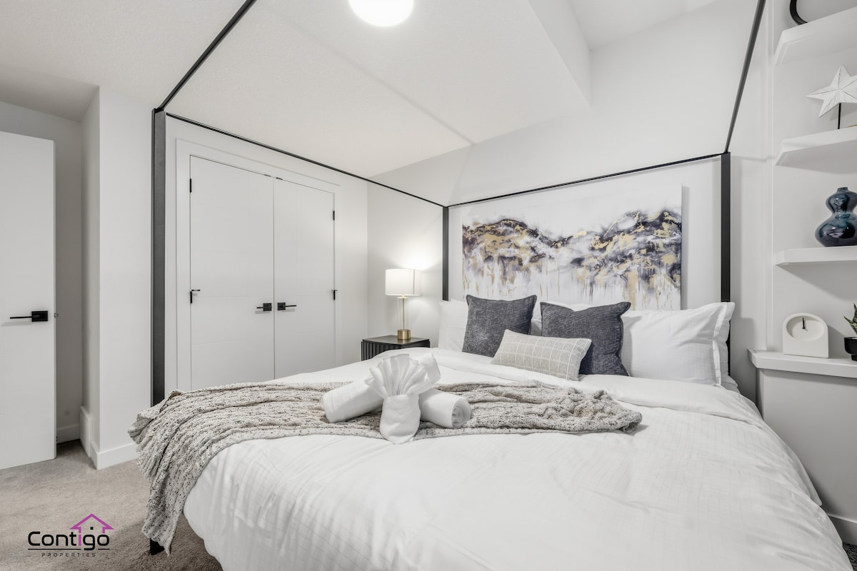 Looking for a modern and convenient home base for your family or small group in Edmonton? Our 2BR suite is the perfect choice. With a maximum occupancy of four, our suite is family-friendly and located just minutes from the University of Alberta and Southgate Mall. Inside, you'll find a stylish and comfortable space with two cozy bedrooms, a modern bathroom, and a fully equipped kitchen. Book your stay with us today and experience all the comfort and convenience of our modern 2BR suite.
