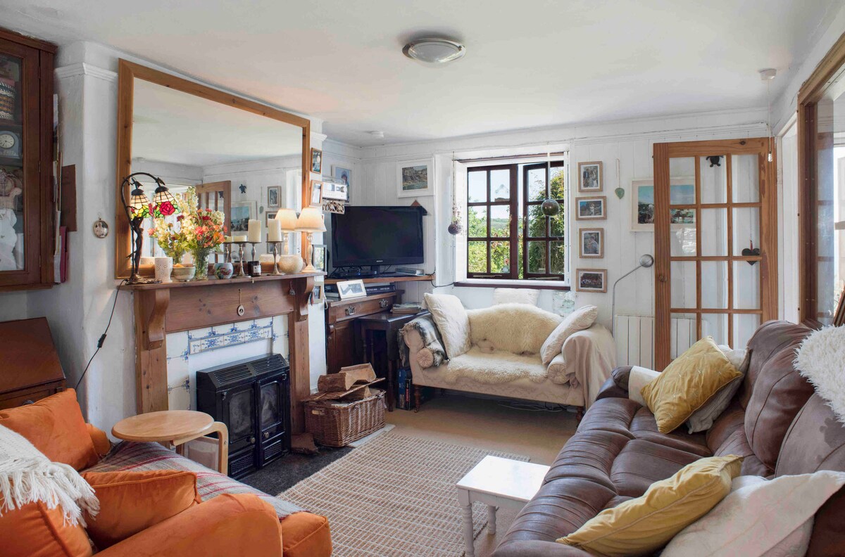 Seaviews, cozy Cornish cottage, woods +2 min beach