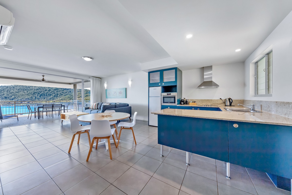 4 star modern apartments with uninterrupted views over the Coral Sea. Fully self contained apartment with modern appliances in kitchen, en-suite in main bedroom, all linen, Free Wifi, laundry & Dryer. Two large pools including infinity pool & B-B-Q area. Fully equipped gym for guest use.A short stroll into the main hub of Airlie Beach shopping,restaurant & cafe precincts. Situated on the doorstep to Great Barrier Reef and surrounding islands. All tour bookings can be arranged at reception.