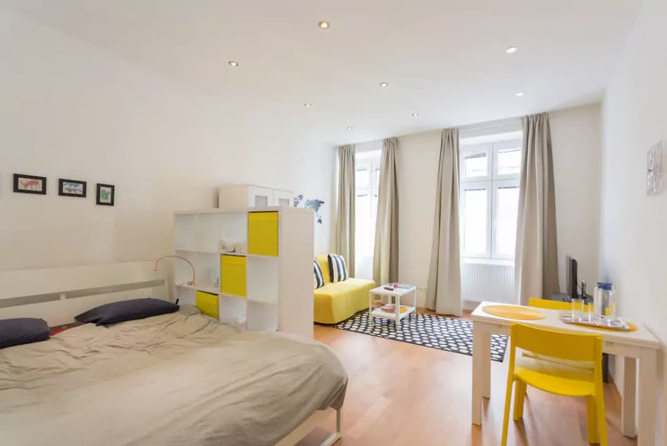 English: City life but make it comfy? Welcome to the Nest, where Vienna feels like a village while vibrant city life is only 10 minutes away! The spacious flat offers every amenity your heart desires- fast internet, a large comfy bed, AC, a cozy couch for long movie nights and a well equipped kitchen for cooking experiments - you basically don't need to leave the house in all pandemic fashion style.
