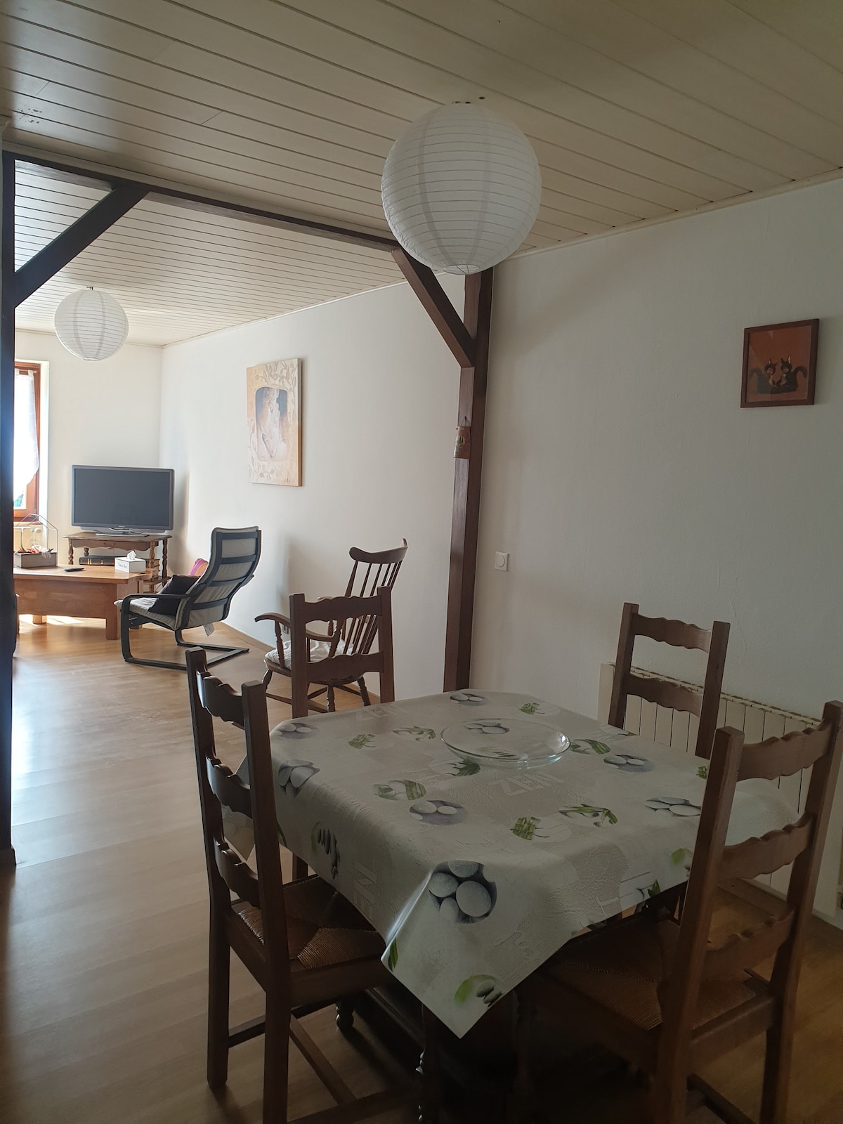 Colombages, exposed stones and contemporary furnishings are the charm of this place. Our rental « Les Lanternes » with a capacity of 4 people, is a nice apartment of 60 m2 on one level with two double bedrooms, one of which is modular. Its wooded outdoor area will allow you to enjoy this peaceful place.