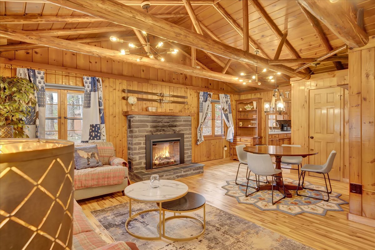 Modern & Rustic Pocono Cabin | Fireplace | Firepit