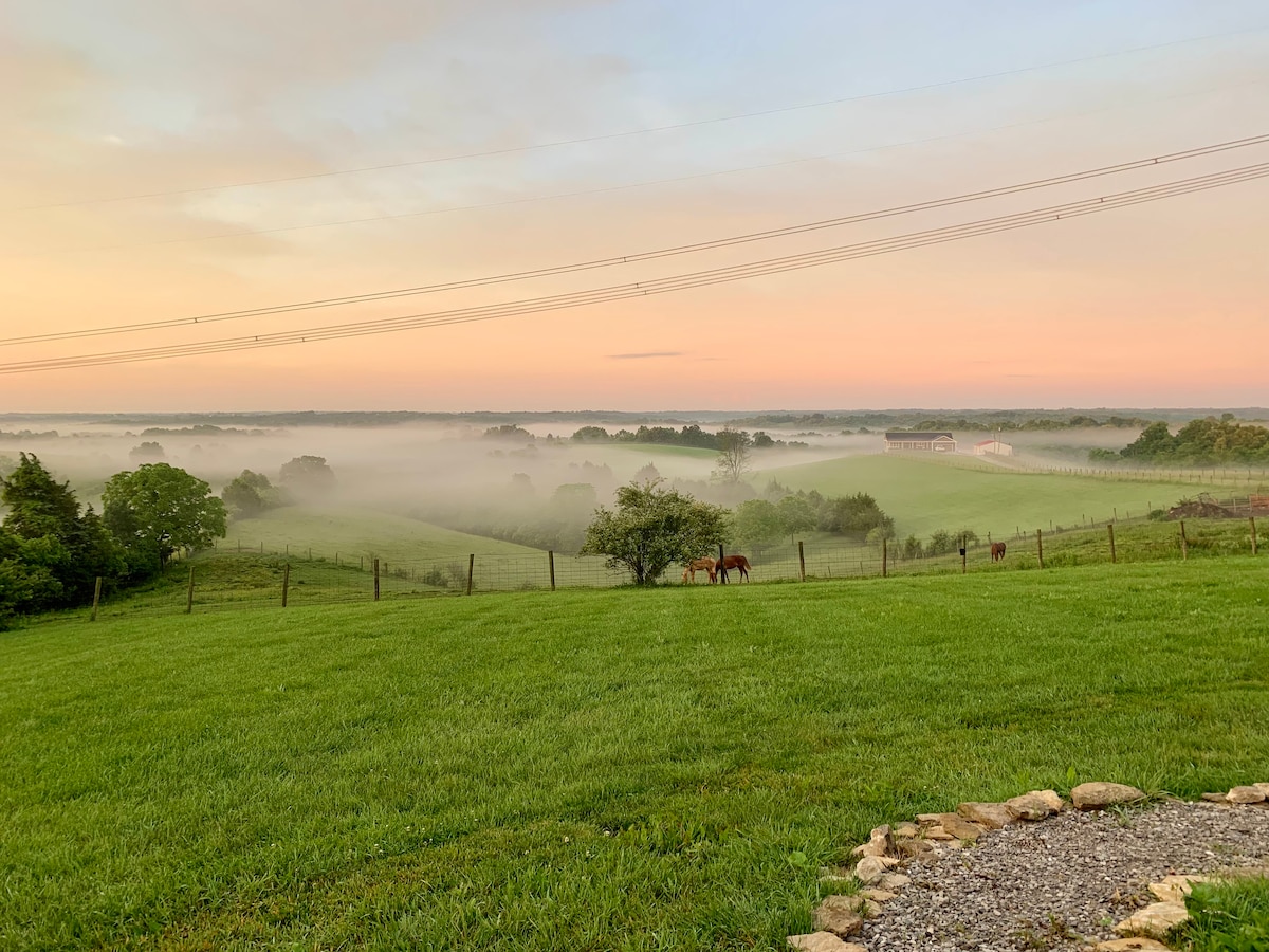 No neighbors! It’s not a big or fancy place but it’s clean, simple, and relaxing. The stars are brightest in the country when enjoying the fire pit. Our two story cabin has 1BR with two double beds, full kitchen, full bathroom, recliners, and grills. It's perfect for couples, friends, or small families. The Ark Encounter, Kentucky Horse Park, Keeneland, and several distilleries are all within an hour of the cabin. This is a great place to relax between visits to these attractions.