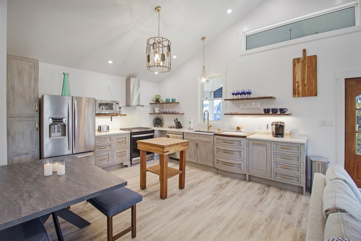 Ideal location in your little piece of paradise. Down a gravel road, with spacious outdoor deck surrounded by nature, yet just under 3 Miles from Wrightsville Beach. Surf Board, Bikes, Outdoor Shower & Kayak with roof straps! Bike to Wrightsville Beach Brewery or Seagate Bottle Shop. Explore Airlie Gardens! Bike to UNC Campus. A tiny house inspired space with vaulted ceilings was built in 2023. With attention to detail & bits of attitude throughout, we know you’ll leave you wanting to come back
