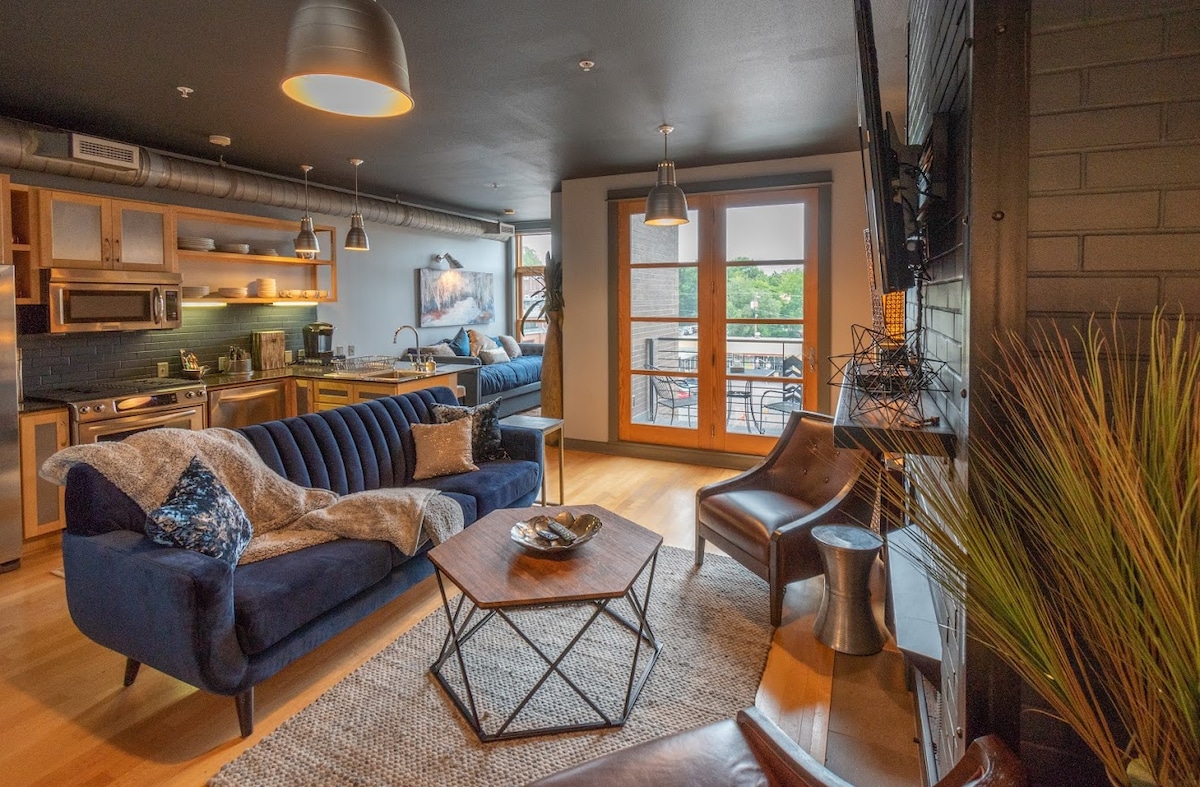Designed by local architect, Cyrus Sutherland, our home is truly one of a kind. With its intricate stonework on the outside, natural wood accents on the inside, custom built-in furniture and floor-to-ceiling windows throughout, Magruder is sure to leave a lasting impression. When you're here, you'll have access to all of our luxury amenities, including an open-concept living space, fully-stocked gourmet kitchen, Master suite , King size bed, and private outdoor patio with a hot tub.