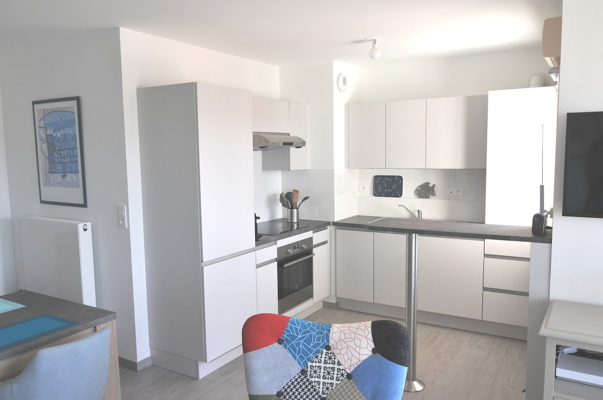 Ideally located to admire the sunsets. Fully renovated apartment not overlooked, independent, located on the 1st floor with balcony in a secure residence with private parking. 800 m from Nausicaa on foot. For trips, bus stops in front accompanied by a bicycle path. Possibility of secure bicycle box in the residence.