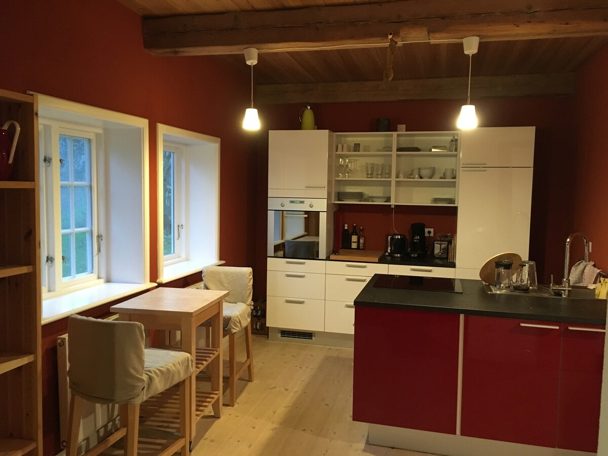 Die moderne 40qm große Ferienwohnung liegt im 1 OG. des neu errichteten Anbaus unseres Wohnhauses und verfügt über ein lichtdurchflutetes Wohnzimmer mit gemütlicher Couch und Flat-TV, sowie ein Doppelbett. Die Küchenzeile mit Esstisch ist mit Backofen, Cerankochfeld, Kühlschrank, Spülmaschine, Kaffemaschine, Wasserkocher und Toaster ausgestattet.