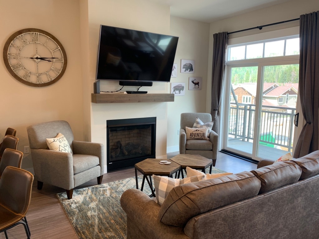 Hideaway Station Terminal East #404 Luxury 2 bdrm condo that accommodates up to 6 guests. Features 2 queen beds & a top-of-the-line queen sleeper sofa. Top floor unit w/ patio & oversized windows featuring views of the East Continental Divide, Fraser Valley and Fraser River. Building has a common lounge area, outdoor hot tub, bike and ski storage. The ski shuttle, restaurants, shopping and Hideaway Park (playgrounds, concerts, art festivals and special events) are all within walking distance.