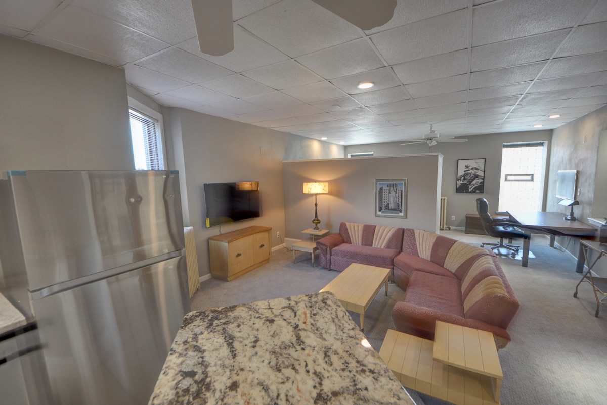 1st Flr Studio Apt Sleeps 12 in Historic Feed Mill
