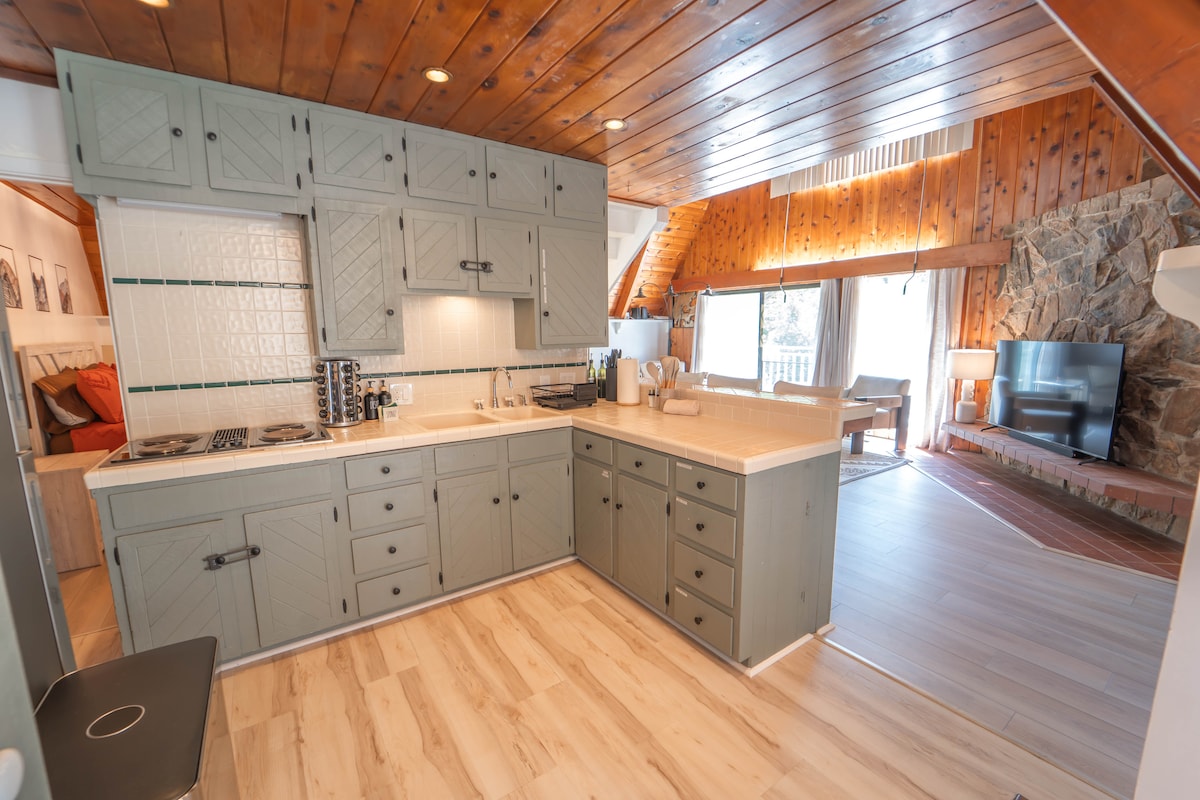 Millwood Cottage offers comfort and convenience without sacrificing the rustic feel and private setting you expect from a rural retreat. It features warm pine paneling, vaulted ceilings, a big screen TV, and a spacious kitchen with a 4 burner gas range and all the cooking equipment you need. Large windows let in the natural light and open up sweeping Sierra views. There's a deck out back with a gas grill and fire pit. Fast internet keeps you well connected to the world.