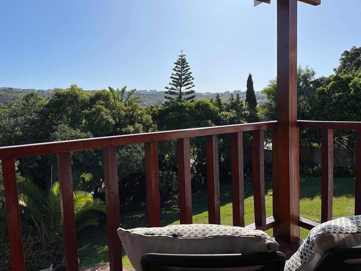 By no means on millionaires mile but situated in the heart of Plettenberg Bay, with solar power, central to all amenities, beaches, shops, restaurants and bars. Includes wi-fi, full DSTV etc. In a Sunny courtyard right next to the main house, shared outdoor space. with undercover safe parking for 1 car only and shared swimming pool. No Rage bookings accepted 2 bedrooms with sleeping loft, full kitchen and lounge area with patio and deck with views of the Lookout Bay and Lagoon.
