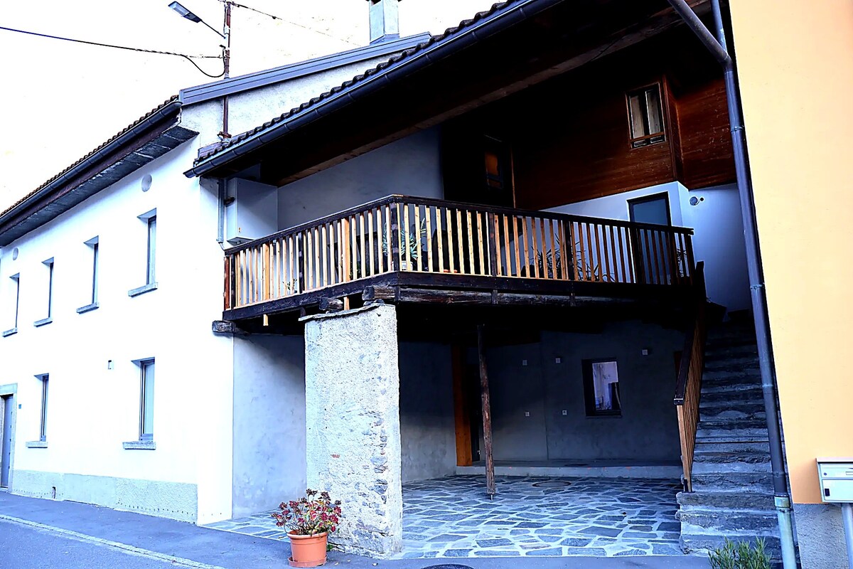 An oasis of peace in the Southern part of the Swiss Alps, a house in Nature. A place to find time and oneself. A stone's throw from everything. All the interiors are in the wood, there is a wood stove, a new kitchen, a big table inside, and an even bigger one outside in the courtyard. You are going to be all by yourself. 4 rooms, 3 Single bed + 3 double bed.