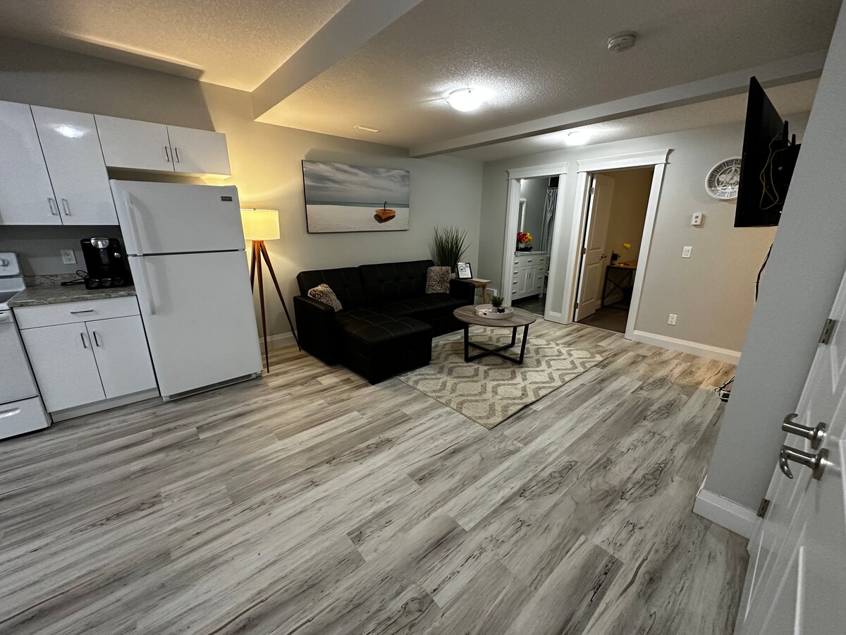 This suite is a bright and open legal basement suite in a new house in the newest subdivision in Fort McMurray. Guests will have access to all the creature comforts of home including a stocked kitchen, laundry, TV with popular apps, WiFi, ironing board, workspace desk and walk in closet. The property is close to the tree line with access to parks, playgrounds, walking trails, bike paths, as well as a short 2 min drive to grocery stores, banks, food and some local shopping.