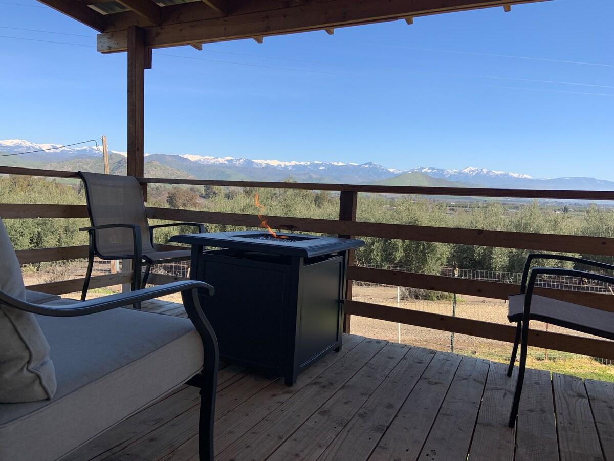 This is our guest house located on our 10 acre horse ranch in the foothills North of the small town of Woodlake. The house is located on Colvin Mountain which gives you great open views of the valley below and the Sierra Nevada Mountains. We do have horses and friendly dogs on the property. We are surrounded by open cattle grazing land. The location is secluded and very safe. The bedrooms, living room, and dining room have full black out curtains if you need to sleep during the day.