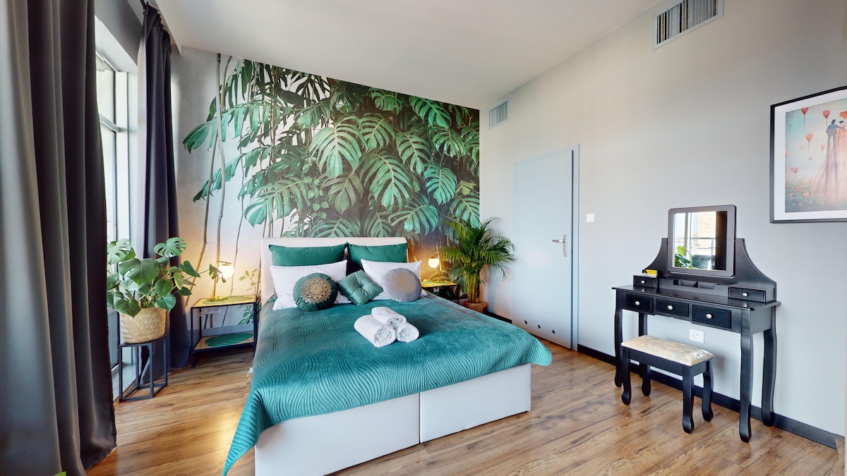 Newly renovated, luxury apartment in the center of Wrocław. Located on the top floor of an apartment building with an elevator. Located just a few minutes' walk (400 meters) to the Wrocław Market Square. Perfect for families and people looking for peace and comfort in an extraordinary interior. Balcony overlooking the city skyline. Free fiber optic internet, 55" 4K SMART TV, air conditioning. Free parking space in a monitored underground garage.