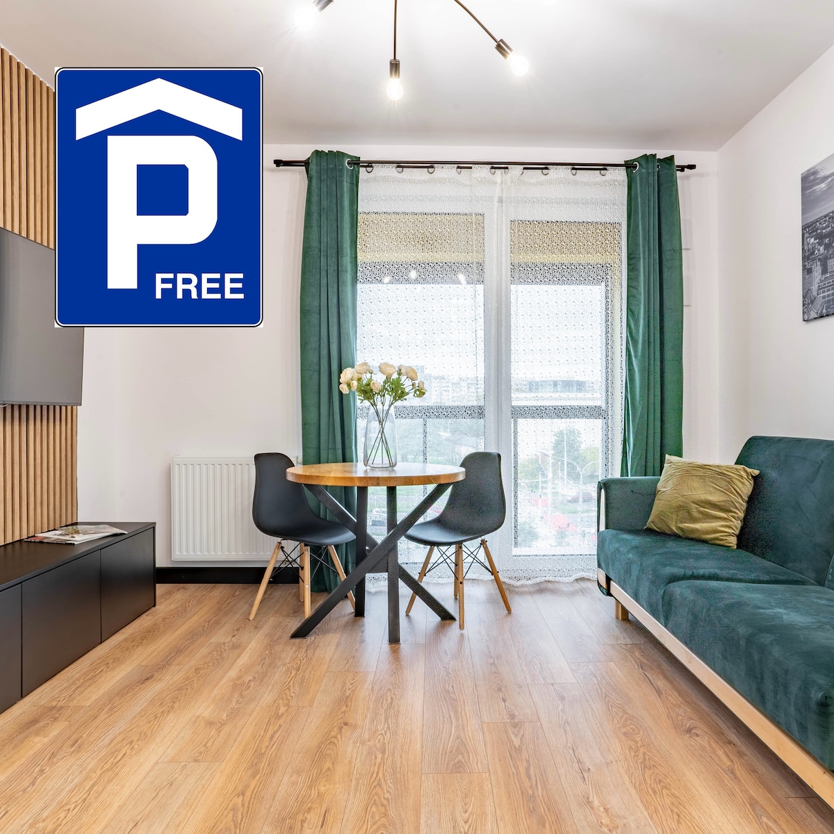 An exclusive, modern and functional apartment with a bedroom, large living room with a beautiful view of Wroclaw. It is located in a new apartment building on the 13th floor with its own underground car park and 24/7 security. The fully equipped kitchen allows you to prepare homemade meals. High standard, comfort, security and a sense of privacy make guests feel at home. Wireless Internet and Netflix. Access to the gym, dry and steam sauna, jacuzzi and children's playroom.