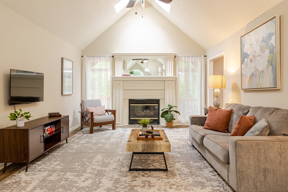 ⭐ Fully renovated 3BR home in Fairway, KS — minutes from KC attractions ⭐ Main-level primary suite with spa-style en-suite bath + clawfoot tub ⭐ Open-concept kitchen with quartz counters + full coffee bar ⭐ Cozy living room with gas fireplace + Smart TV ⭐ Upstairs game room with Xbox + lounge space ⭐ Private office, exercise area, and landscaped backyard ⭐Conveniently located less than 5 minutes from The Shops of Prairie Village and roughly 10 minutes from the Country Club Plaza!