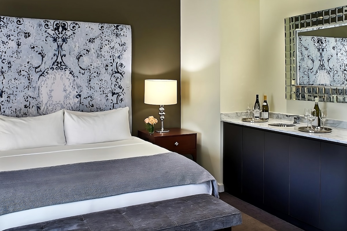 Plaza Heart: Luxe Suite with Reserved Parking