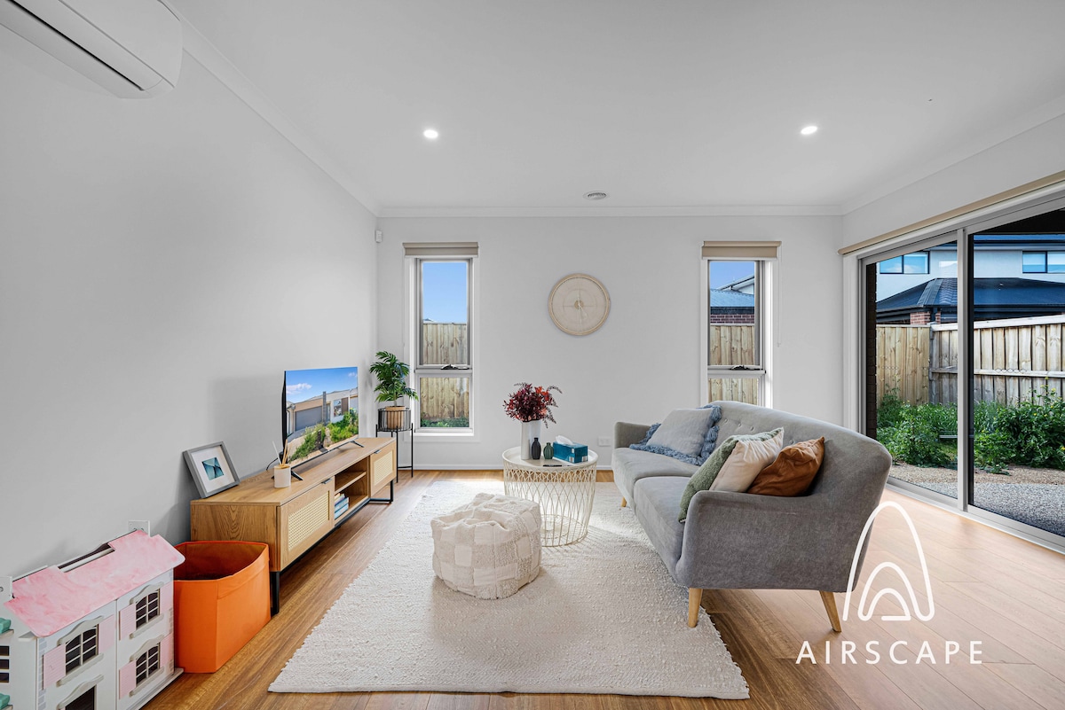 Kick back and relax in this calm, stylish space. Welcome to our cozy three-bedroom home located in Tarneit, Victoria. Our home is perfect for adult groups and business travellers alike, if you are looking for a comfortable and stylish home. Not suitable for children under 12, including infants. Stay comfortable all year round with central heating and evaporative cooling.