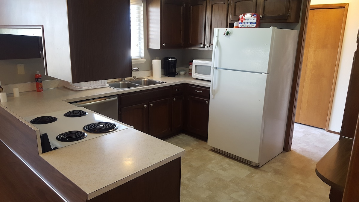 Welcome to your home away from home! This large, yet cozy home has been lovingly updated throughout with touches you’ll love. 4 private bedrooms, 3 King beds and 6 single beds, 2 living rooms, a game room, large TVs throughout, and a bonus shed furnished for gaming & fun! The backyard oasis will complete your picturesque stay. Centrally located, just ten blocks from the hospital and two blocks from a summer public pool & winter sledding hills. Family, friends, and furry friends are welcome!