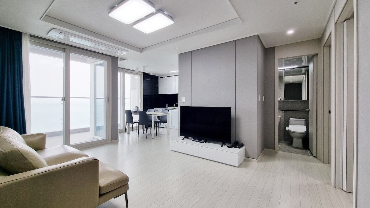 24th floor skyscraper with a sea view This is a pleasant and clean Sokcho 'Zilla', built in 2024. Free ott provided *Netflix, Disney Plus, Watcha, Amazon Prime, YouTube* We provide a comfortable and relaxing bed with the finest hotel-style bedding and mattress. Accommodation โAccommodation relatedโ โ Check-in/Check-out - Check-in 15:00 / Check-out 12:00 (non-face-to-face) More than just checking in & out of regular accommodations Extended by 1 hour โ Bedroom - 1 queen bed -Disinfectant washing every time ยท Use of comfortable hotel bedding dried at high temperature โ Balcony A tea table and chairs where you can have a meal and tea time while facing the sunrise, sunset, and breathtaking high-rise view of Sokcho Port and the sea โ Kitchen - Fully equipped kitchen (excluding rice cooker and seasonings) -Built-in fridge, microwave, 2 ceiling air conditioners, washing machine, induction, coffee pot, etc. โ Living room -Tea table, vacuum cleaner, Standby TV Comfortable ott viewing available โ Bathroom -Shampoo, conditioner, body wash, hair dryer, and towel provided