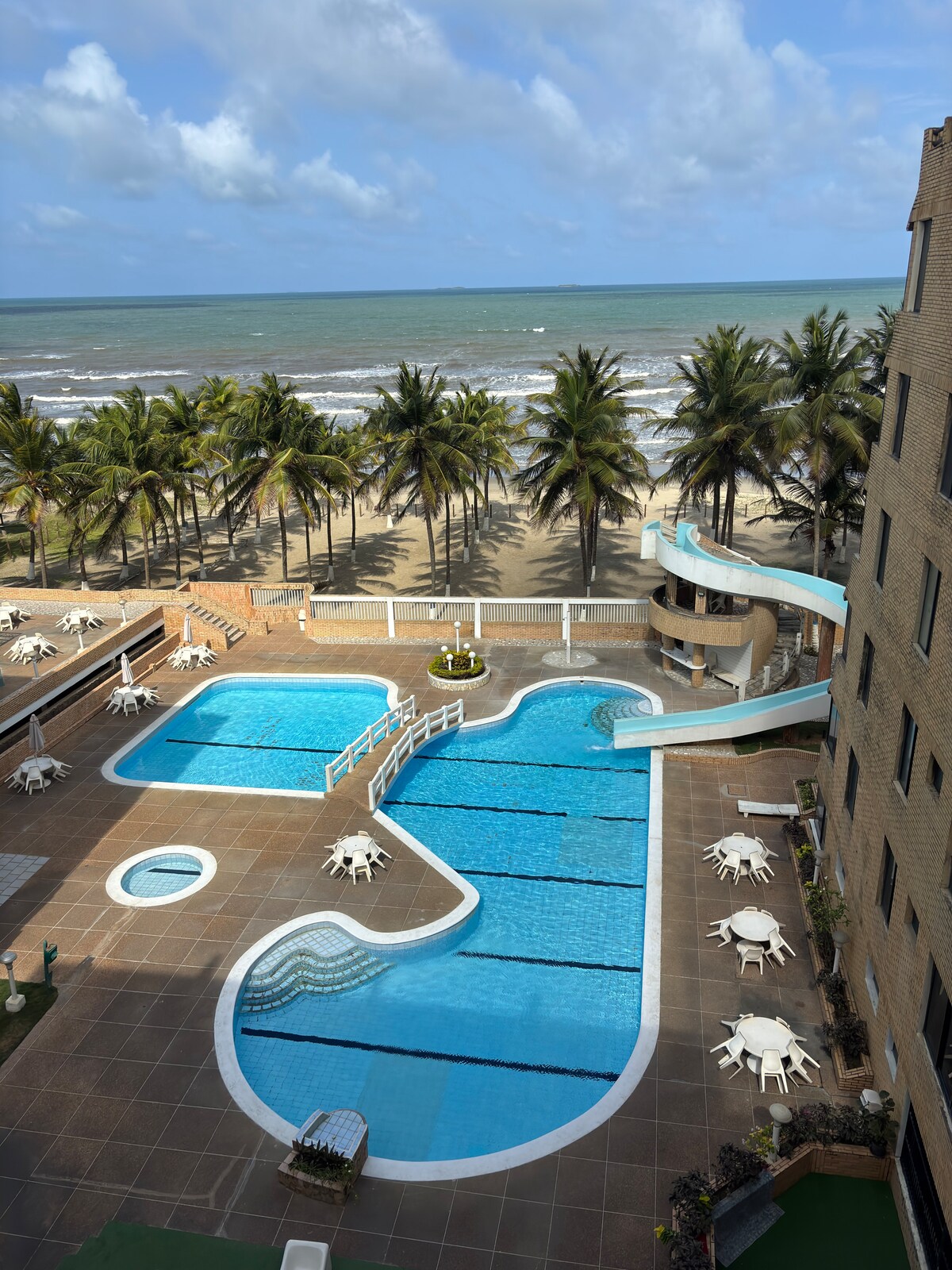 Take a break and unwind at this peaceful oasis. The smell of salt and the sound of the sea, you lower the garden gates and you are already on the beach. Guest Access An unbeatable residential complex, it has a platform for eating or resting, beautiful swimming pools, a slide for children, enjoy massages in an outdoor Jacuzzi, large gardens, parking space, private beach area, 24-hour surveillance, the complex has a water well and a TOTAL power plant.