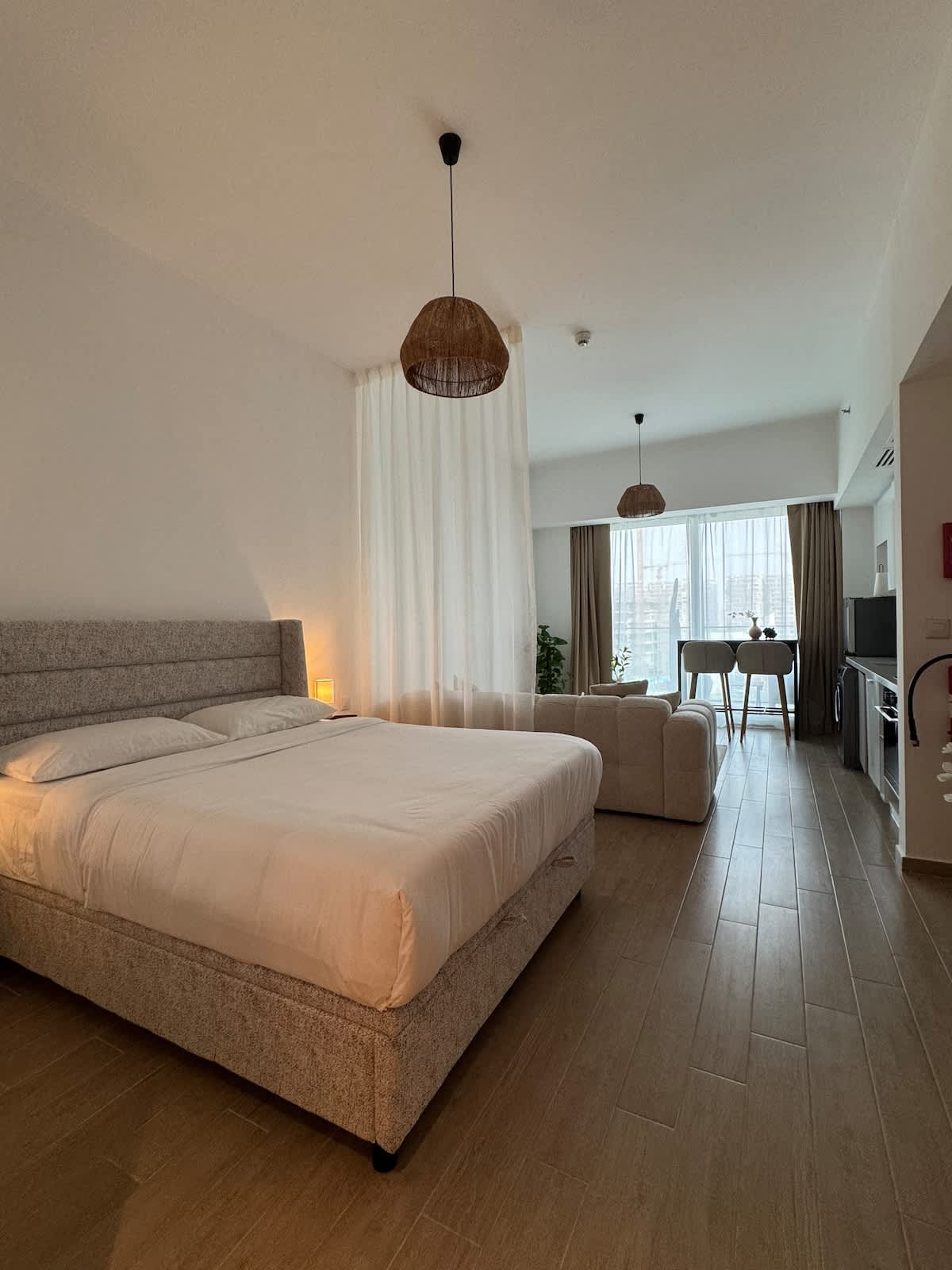 This modern retreat offers a queen-size bed, a cozy sofa bed (perfect for up to 2 extra guests), full kitchen, smart TV, Wi-Fi, washer/dryer, and private balcony with Gulf views. - Enjoy private beach access, 3 pools, 2 gyms, mini football field, kids’ area, and free parking. - Steps from Carrefour, Yas Marina Circuit. - 5-10 min to Ferrari World, Yas Mall, and more. - 7 min to airport, 25 min to downtown. - Affordable luxury with 24/7 security. Book now for a vibrant Yas Island stay!