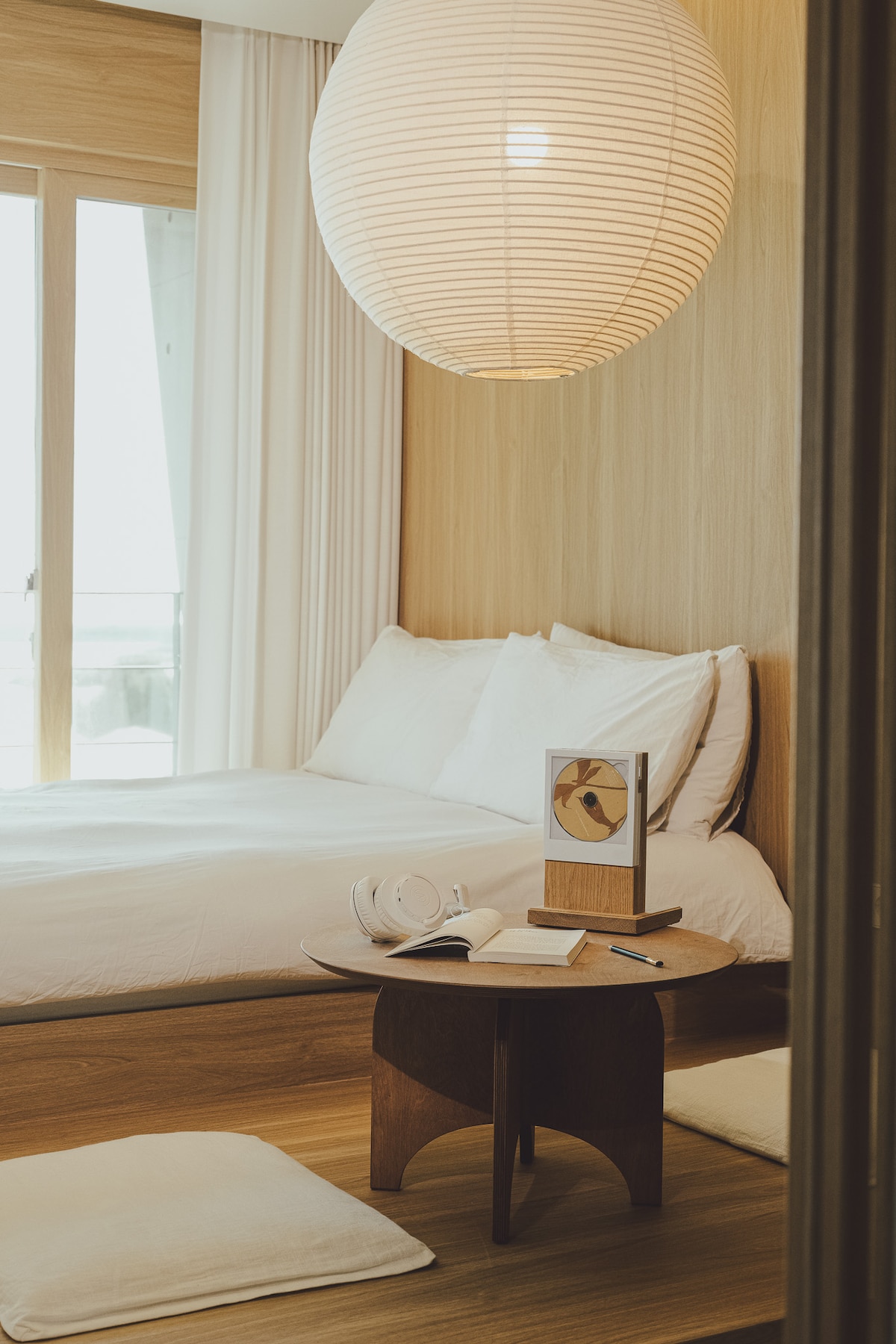 What we had in mind for this room was “deep rest.” Time away from daily life should feel simple and calm, not full of stimulation. We shaped the space with clean lines, soft tones, and the warmth of wood. It’s not flashy, but the details offer quiet comfort. A low table invites you to sit, write, or simply pause. We’ve placed a few short essays and ambient tracks. Meant to be savored slowly. You don’t need to do anything special here. Just stay, and rest well.