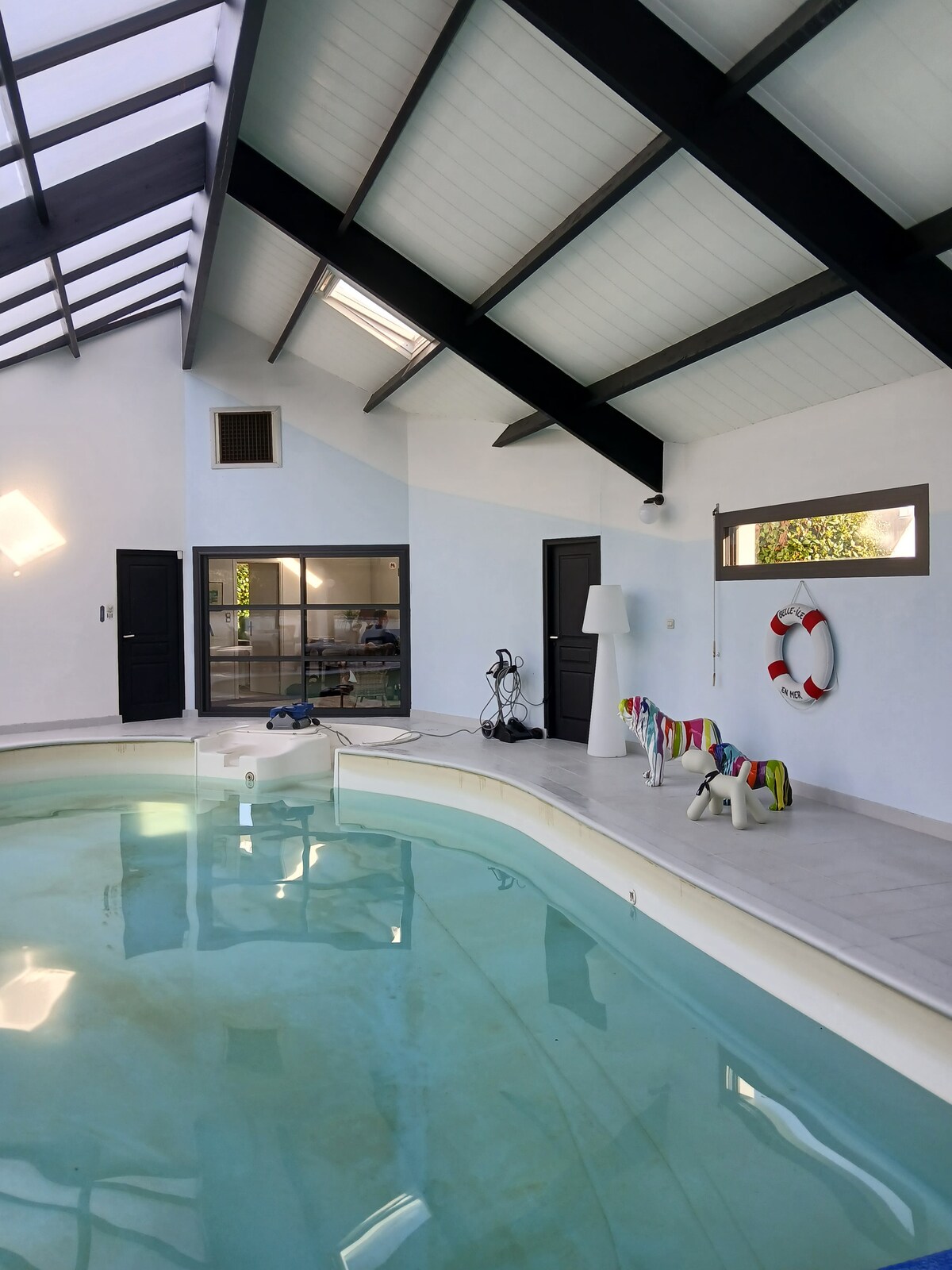 We offer for rent, in the town of Plédéliac, in a quiet environment and with stunning views of the fields, this charming vacation home, 20 minutes from the sea, with private indoor pool and sauna, which can accommodate up to 6 guests (ideal for 4 adults and 2 children). Nice living room of 50 m², equipped open kitchen, two beautiful bedrooms with shower room, garden of 1,500 m². Wifi. Sheets, towels, bathrobes included. 3 nights minimum. €1000 security deposit