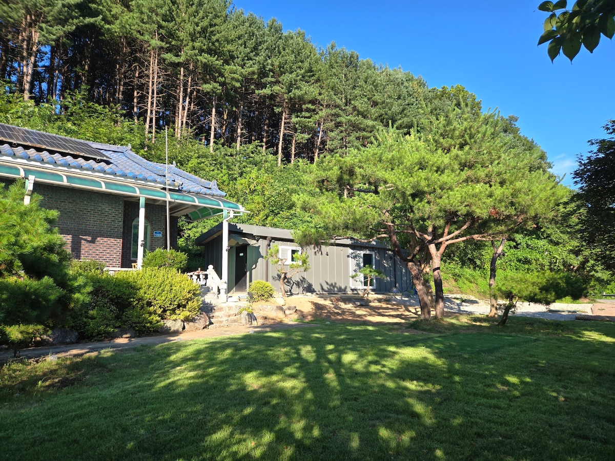 Hwige Yangpyeong is a one-team reservation system, and you use the entire house yard alone. Hwige Yangpyeong has recently undergone a renovation We welcome guests with a larger yard (about 70 pyeong) and a more beautiful landscape. So that you can enjoy the Jungmisan view better There is also a signature zone unique to Hwige Yangpyeong, so please leave precious memories with your loved ones and dogs. We definitely recommend watching the constellations in the signature zone, and it's cold in winter, but the constellations are more visible, so please enjoy the romance. (Note that it is pretty when the sun rises) In addition, we took care of the safety of the dog with the fence, so you can let your dog run and play as much as you want in Hwige Yangpyeong. Enjoy a relaxing fire pit and barbecue in the private yard!