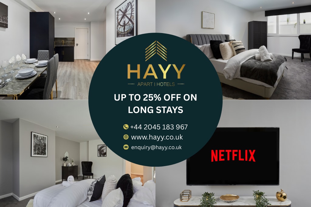 🏡 Stylish 2-Bedroom Townhouse by Hayy – Luxury Near Bradford City Centre ✨ Spacious & modern townhouse just minutes from Bradford City Centre 🛋️ Cozy living spaces & fully equipped kitchen 🌿 Private outdoor area for relaxation 💻 Perfect for families, groups & business travelers 🍴 Explore nearby restaurants, shops & attractions 🎉 Ideal for work, leisure, or special occasions Book now for an unforgettable stay with Hayy! 🗝️