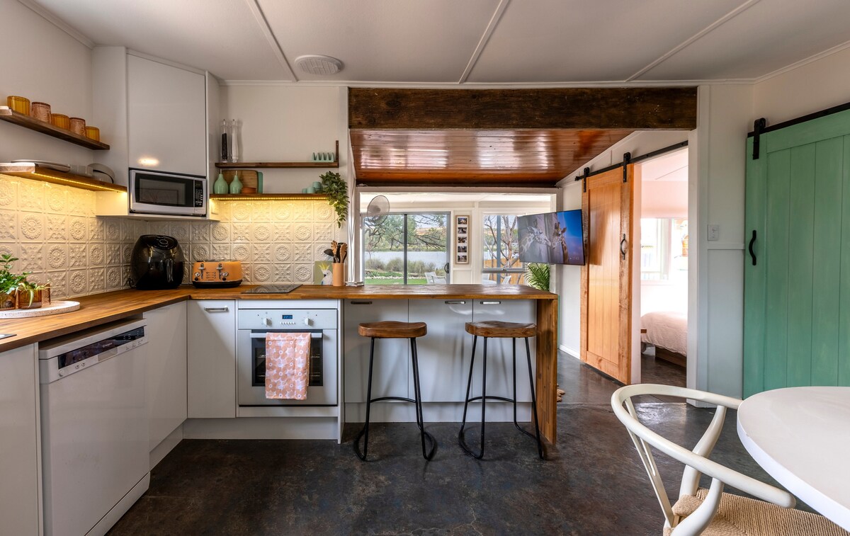 This beautiful shipping container tiny home is wonderful for people who love nature, animals and walking in the bush. This rustic tiny home is architecturally designed and constructed almost entirely of recycled materials gathered from house demolitions. Situated in an amazing location overlooking large lawns and a pond with sea views only 20mins from the cbd. We would love to share our quirky home with you. We also rent space for parties and weddings at a higher cost per night. Just ask