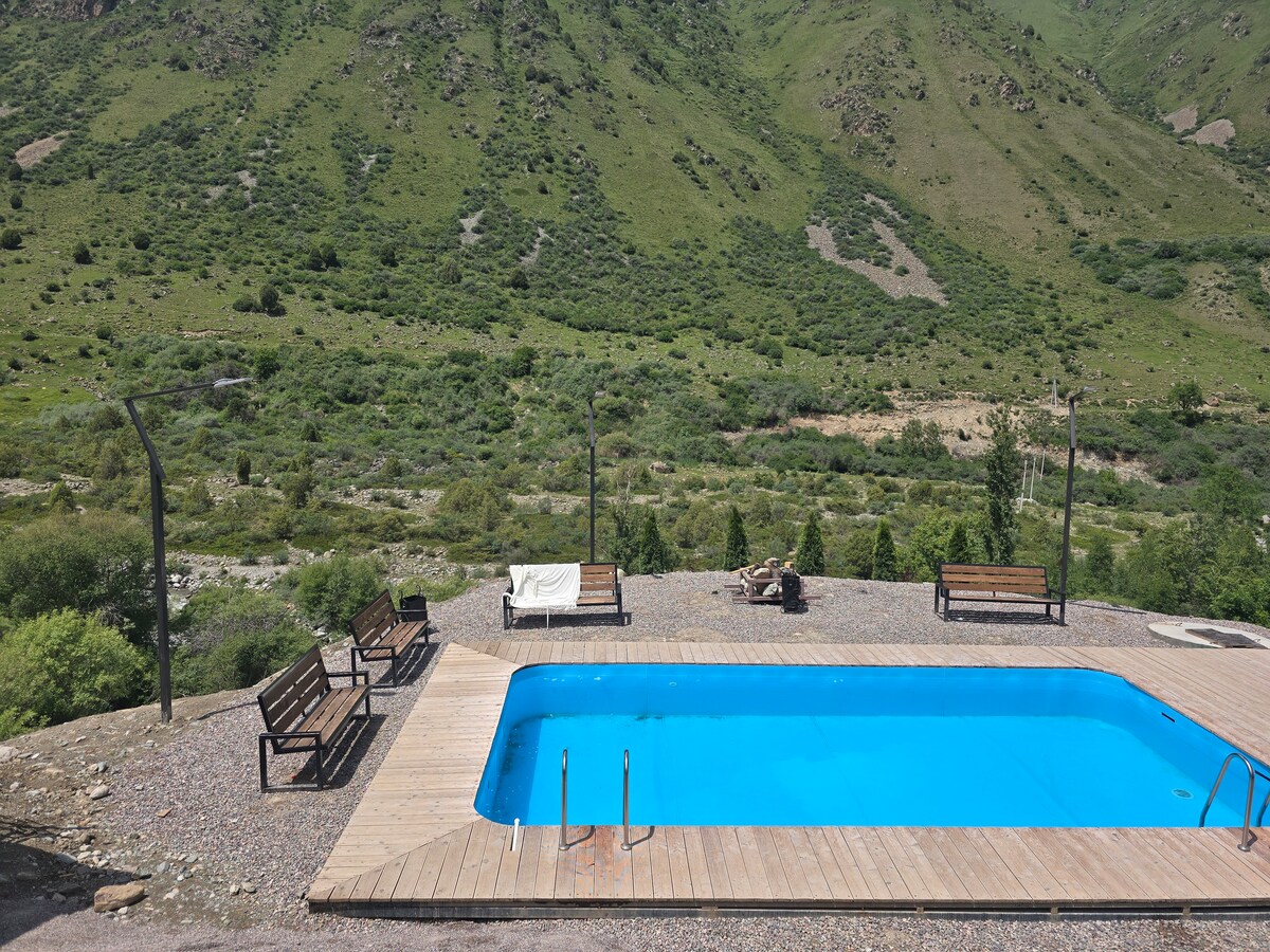 Hello! We are happy to welcome guests to our country house, which is 70 km from the city of Bishkek, and 30 km from the city of Tokmok. The house is surrounded by mountains, forests and rivers, and a lot of hospitable neighbors. We have only one house in which you will not share with anyone else. As amenities, we provide the opportunity to use cold and warm water, a toilet inside the house, a kitchen and dishes inside it, the Internet, as well as cellular communication in Kyrgyzstan. Possibility of transfer from Manas airport.