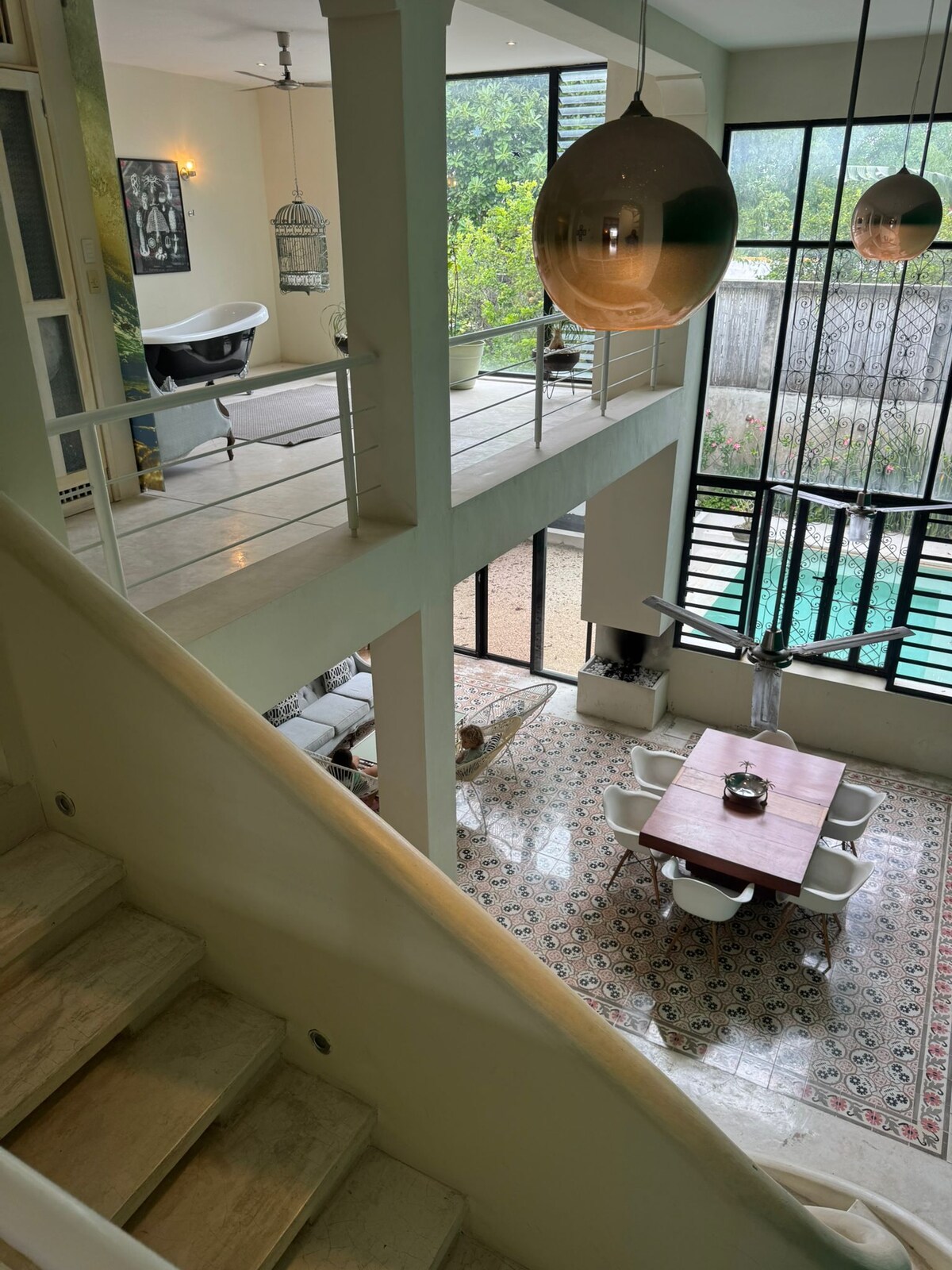 This Casa Vagantes in the La Ermita neighborhood has architecture that dates back to 1800, high ceilings and masonry walls that in the design we imagine as scars of the passage of time in this small but fascinating alley. With the idea of creating a loft, we integrated an entire room into a space that is perfect for a couple who wants to experience Mérida in an iconic neighborhood as an unforgettable experience. Casa Vagantes Ermita promises a stay of comfort and style.