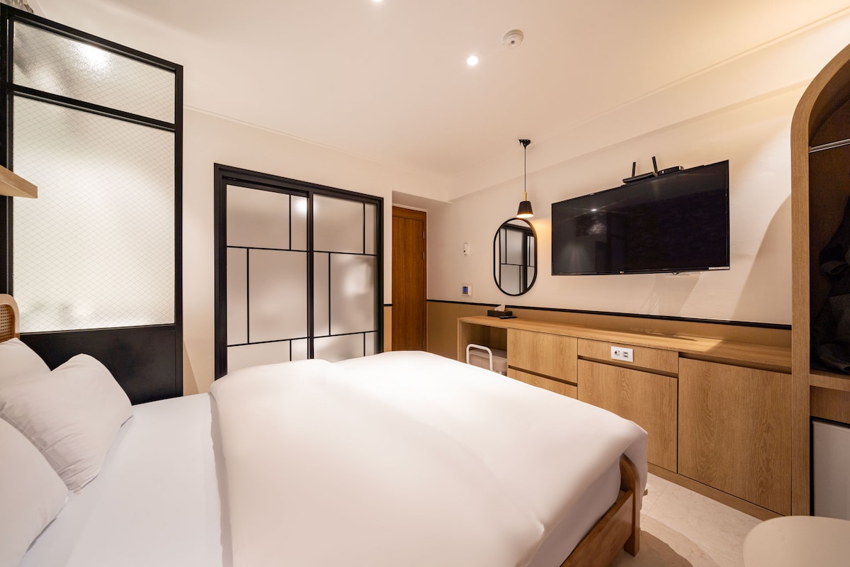Daejeon Yucheon Sandy Stay Premium General Room #Queen Bed #Sungshim Refrigerator #Free OTT #Large Bathtub #Seven Knights