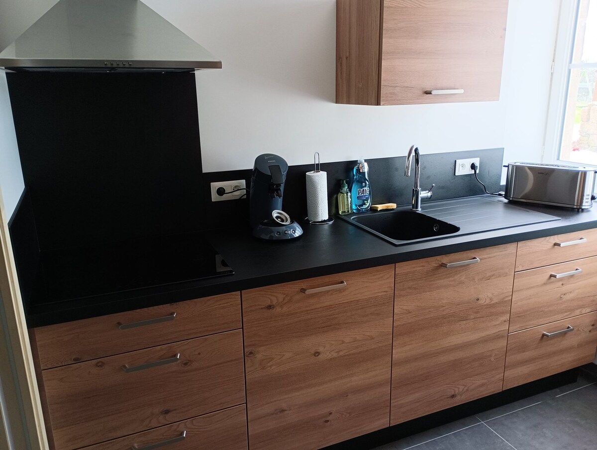 Located in the heart of Normandy, 15 minutes from the sea and all the D-Day festivities, come and relax as a couple in our post-war reconstruction chalet, fully renovated in 2025. If you want to relax by the fire, play a game of pool, enjoy a little spa time or watch a good film on the big screen, you've come to the right place! Our animal friends are welcome, they will have a private and enclosed garden. Free bottle of sparkling wine! Bread machine right next door.
