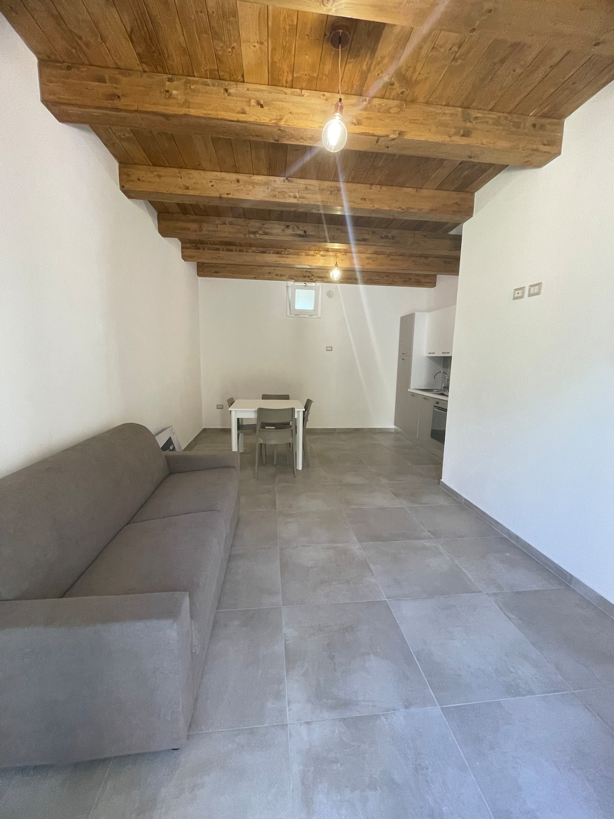 The studio apartment is located on the ground floor of an old renovated farmhouse. Equipped with an outdoor veranda complete with umbrella, table, chairs and deck chair, in front of the accommodation there is a common area of well-kept garden with reading corner and deck chair, and barbecue corner, inside the property there is also a parking space. The 20 sqm apartment consists of a double bedroom and a single kitchenette and a separate bathroom with shower.