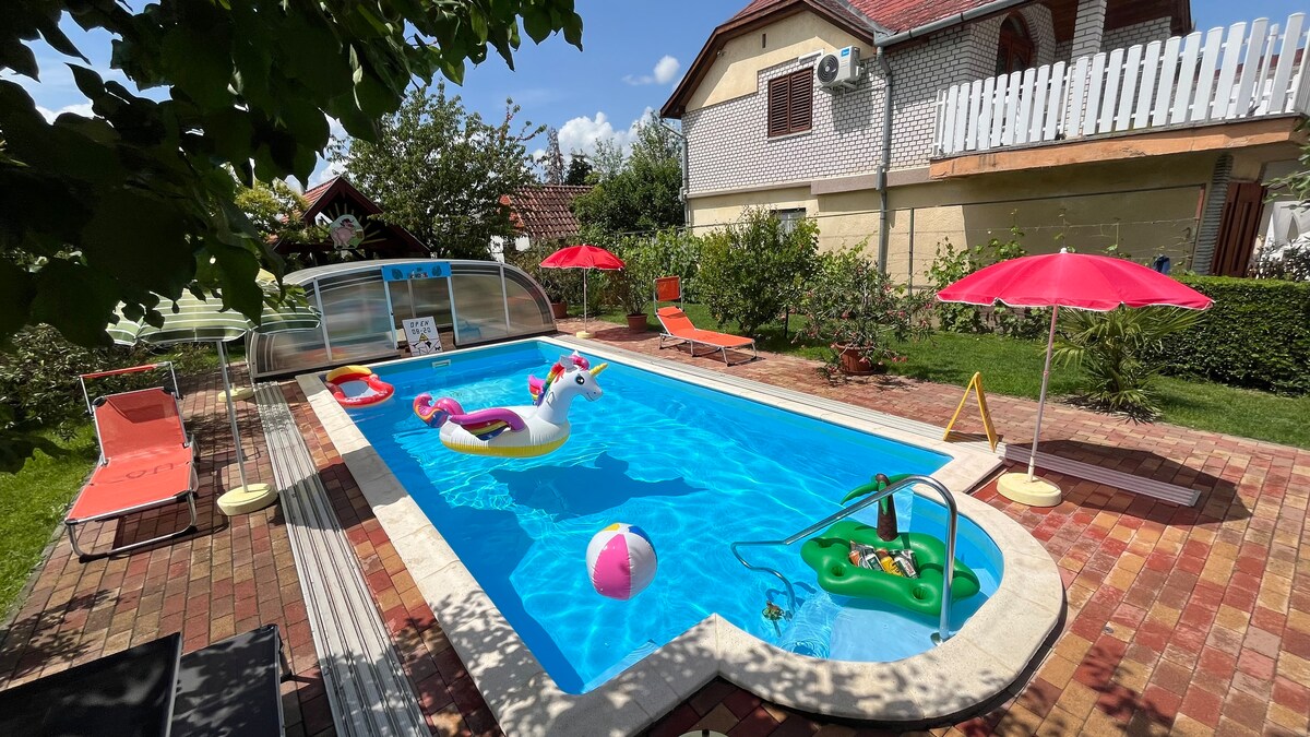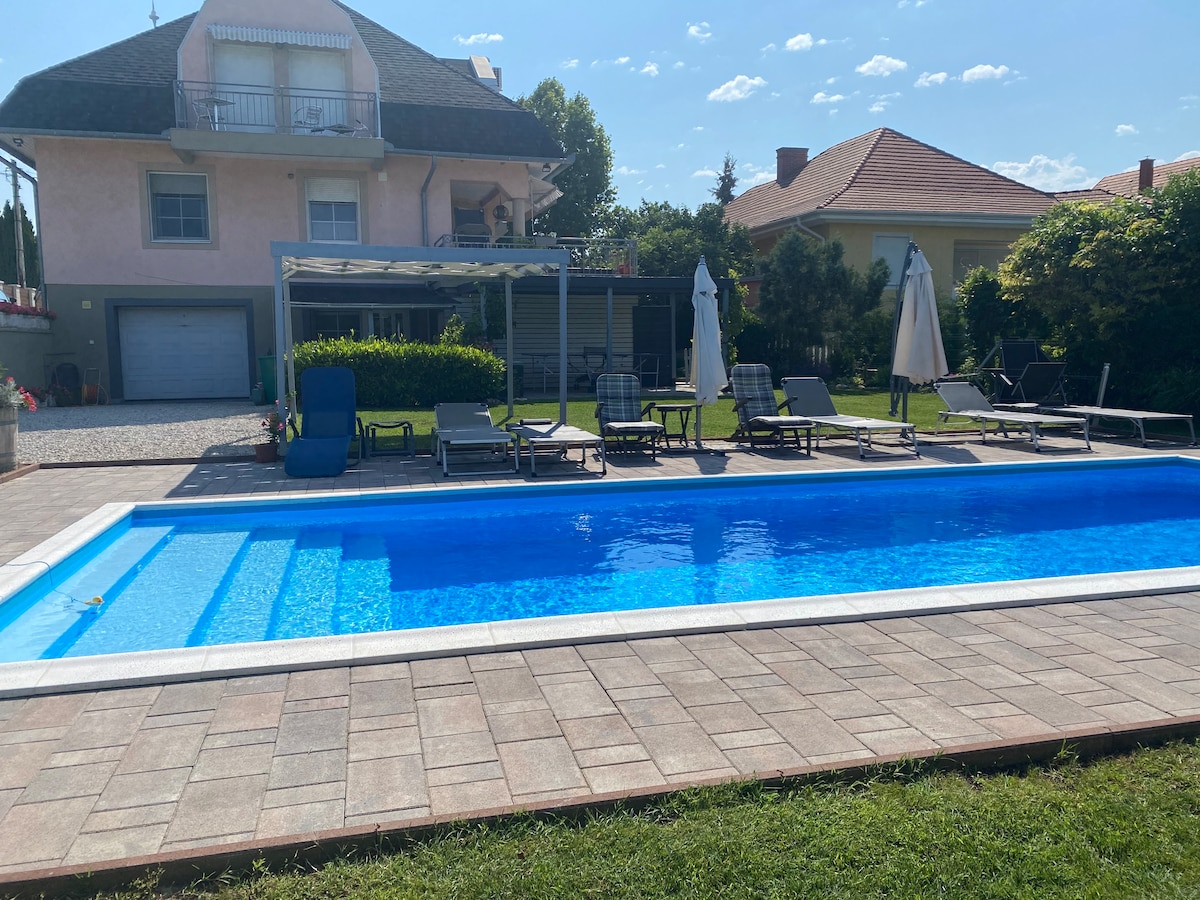 Vergiss deine Sorgen – unsere „Kleine Auszeit“ bietet Ihnen ein komplettes Haus für 4 (max. 6) Personen mit komfortabler Ausstattung und sauberen Zimmern (deutscher Standard). Das Haus ist sehr nah am Nationalpark und ca. 4 km vom Balaton entfernt. Im ebenfalls 4 km entfernten Keszthely gibt es ein wunderschönes Schloss, Museen, sehr gute Einkaufsmöglichkeiten und viele Restaurants. Zum Thermalsee in Hévíz sind es 7,5 km. In der Nähe kann man auch sehr gut Wandern. Wir geben gerne Tipps.