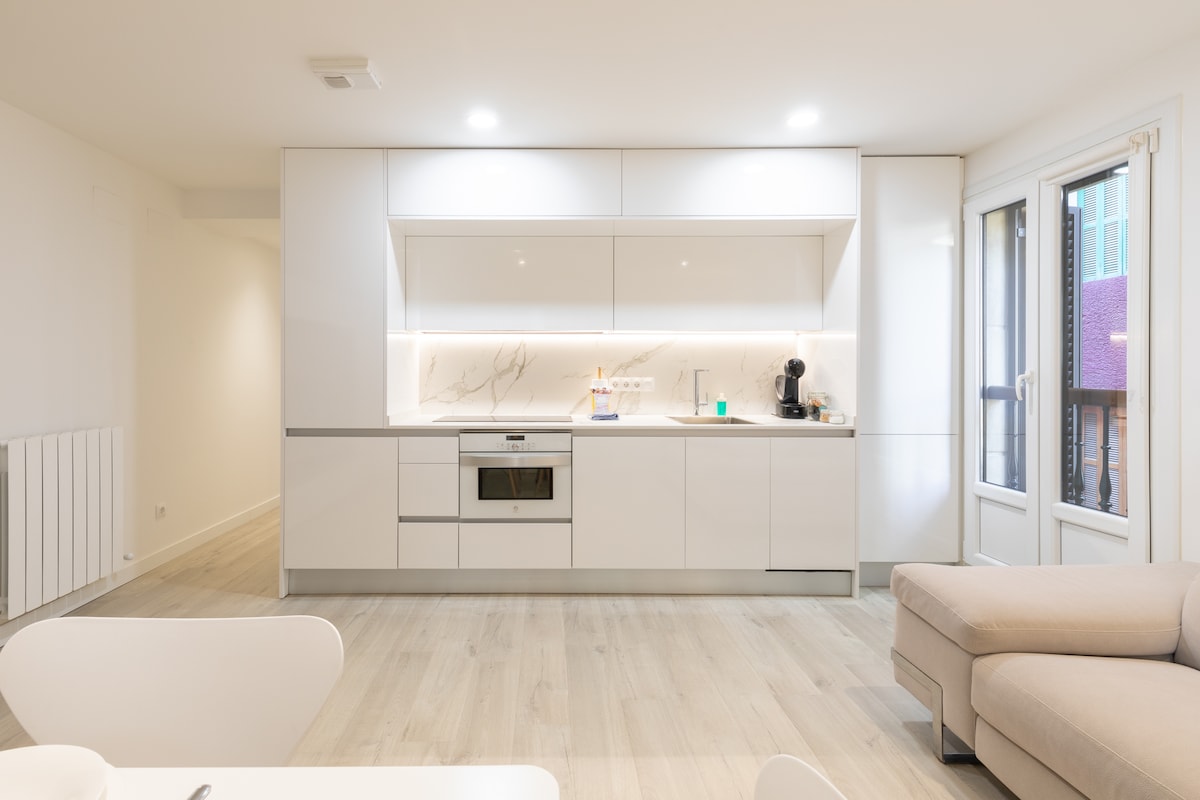 New windows! Apartment 1 minute from Zarautz beach. Completely renovated and super bright. Equipped with everything you need for a pleasant stay. It has a bedroom with a double bed and another bedroom with a single bed. The kitchen is spacious and complete to get the most out of it and to be able to test what you have learned from the local cuisine. The apartment is located a few meters from the old part and 50 meters from the beach.