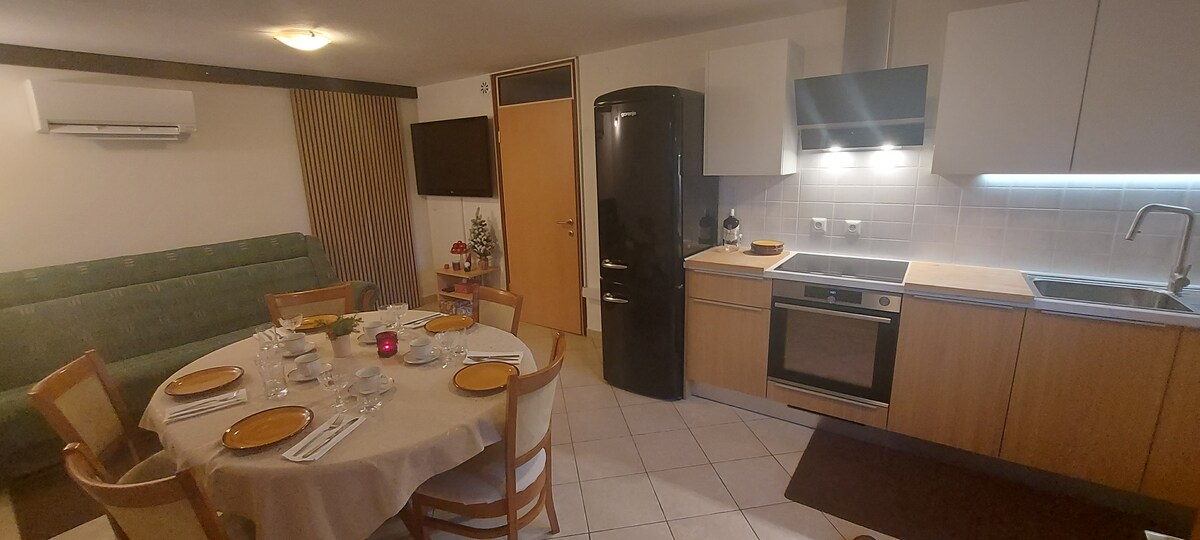 Whether you are coming because of our beautiful mountains, skiing, biking, hiking... this is your place to stay. Apartment on the upper floor of the house offers 2 rooms (1 with king size bed and a living room with an extendable sofa) that share a common balcony. Kitchen is equiped with all basic cookware and refrigerator. Roomy bathroom is equiped wit a washing machine. Every need that you might have will be taken care off. Welcome!