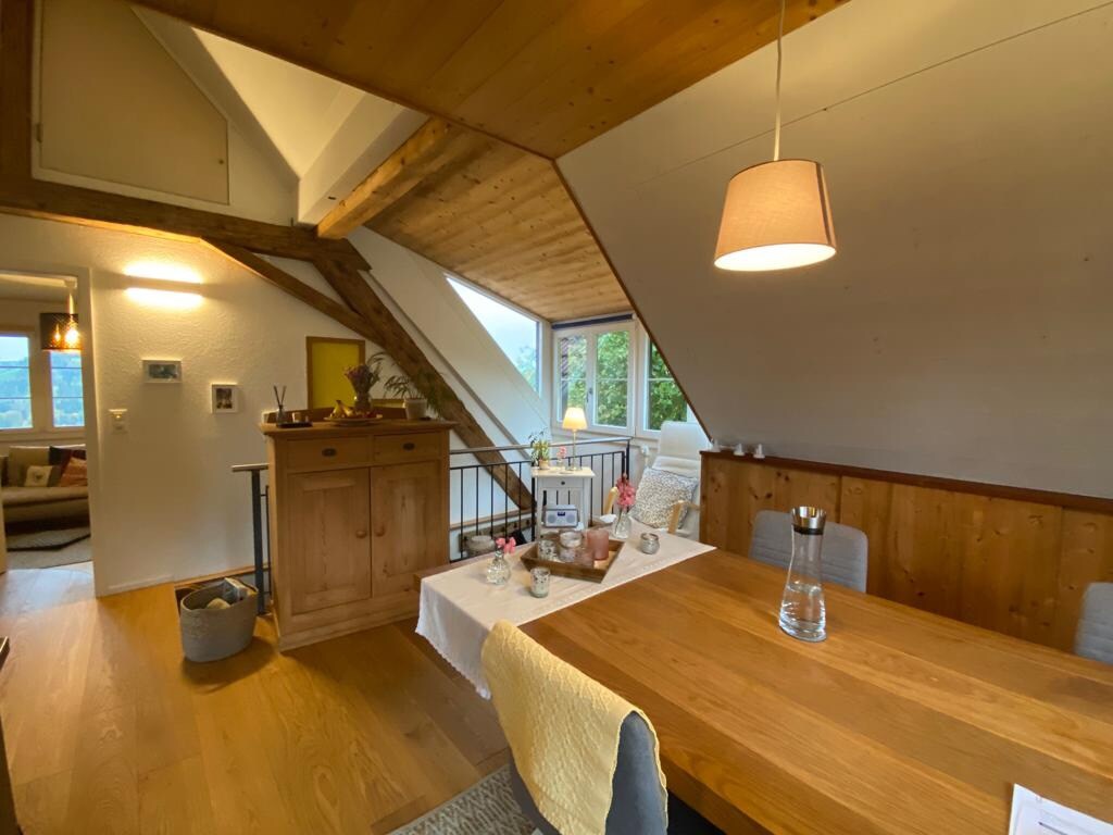 This spacious apartment is located in the cozy attic of a typical Emmental farmhouse named Bühlmenschwand. In addition to the hosts, friendly dogs, cats, sheep, donkeys and chickens live on the Bühlmenschwand farm. From here you can enjoy beautiful walks through the adjacent woods and meadows, or further discover the Emmental by car or bike.