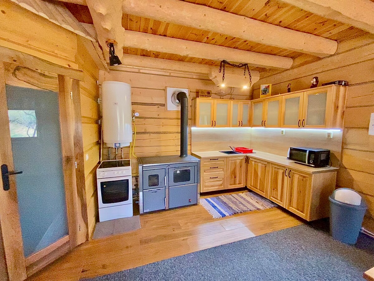 The cottage is located in a mountain clearing, fully equipped, The cottage is 35 square meters in size and has everything you need for normal functioning. Toilet, shower, kitchen combined with a living room and bedroom, from the living room you can go to the balcony from which you can see the entire clearing and the Bielskie Tatras. On the roof of the building there is a large terrace where you can do yoga or relax on nice days. Sauna and hot tub are available for an additional fee Bali 150 PLN - 2.5h Sauna 150 PLN - 2.5h