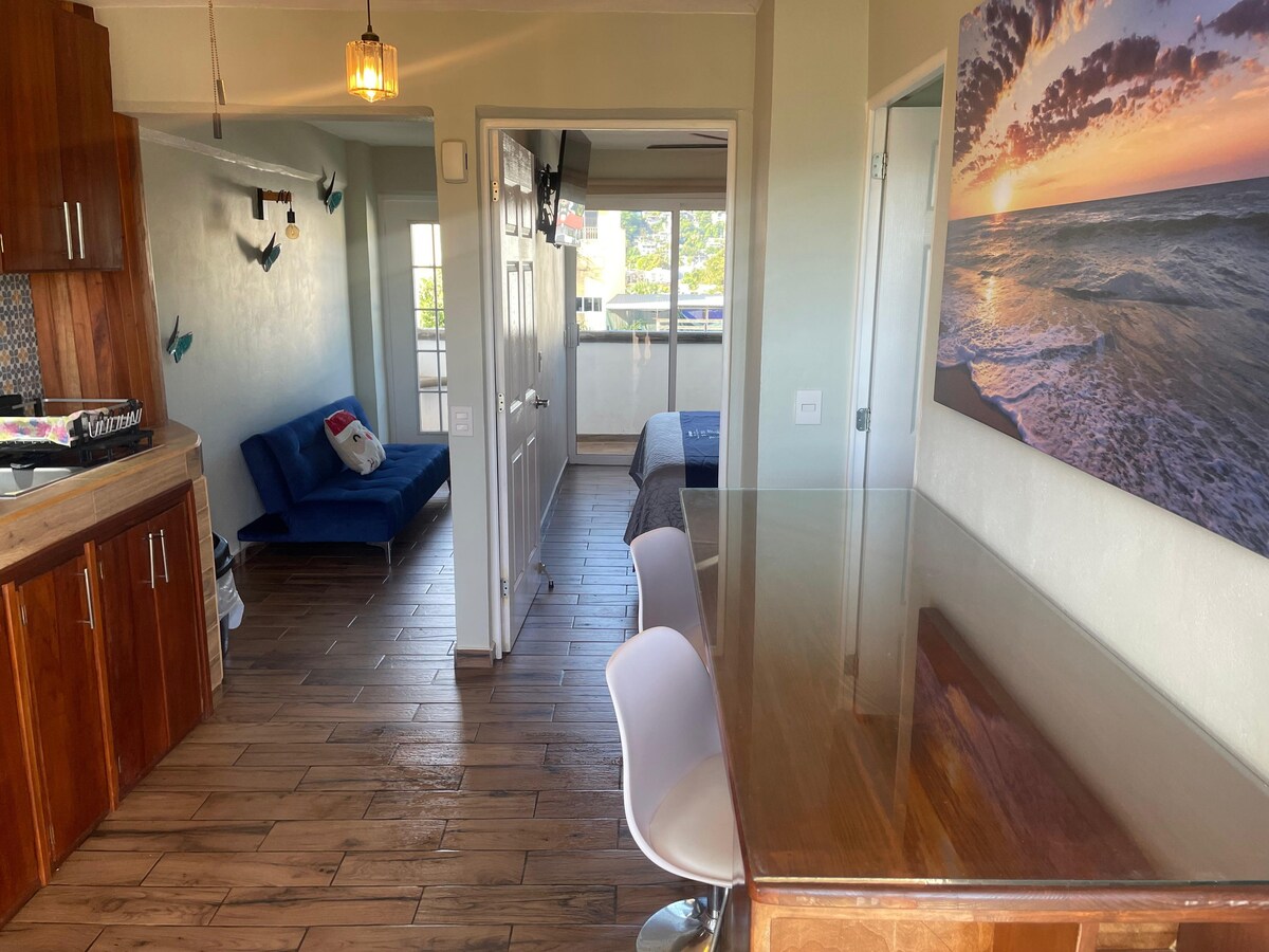 The Loft or studio has a king size bed, equipped kitchenette, a/c, cable tv and wifi. It is only one block from the wood beach (3-5 min walk) and less than 10 min walk to downtown Zihuatanejo, Playa la Ropa 15 min walk. It is on a very lively street where you will find several restaurants, cafes to eat and places to visit. Great location.