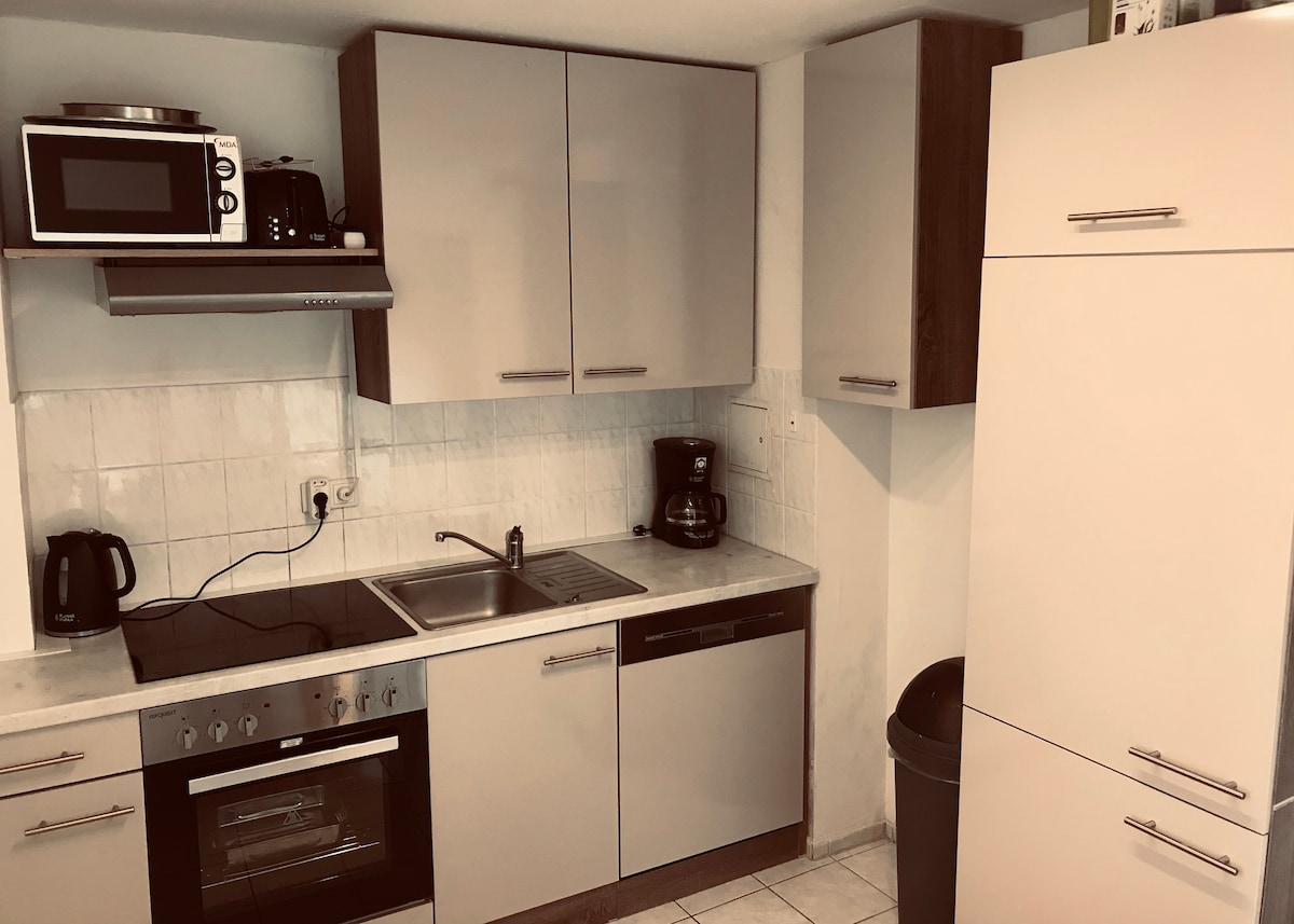 Our apartments are located on a south-west facing, over 1,000 sqm fenced garden property. The two modern and cozy houses built in the half-timbered style are located on a quiet residential street (dead end). The spacious garden with two barbecue areas and a weatherproof shelter, sun loungers and a lockable bicycle shed is available to all guests.
