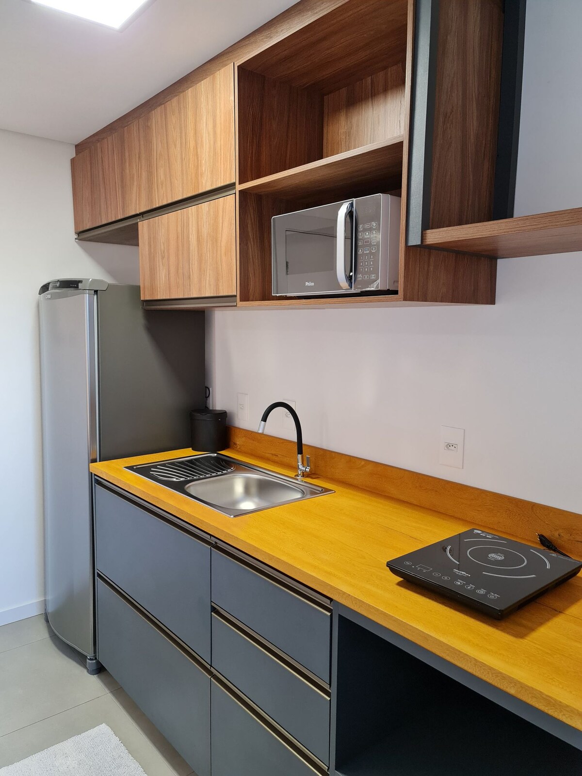 NEW and modern loft in the center of Pomerode, totally New. Possibility of accommodating a baby or child. It is a 25m2 loft with a full kitchen and a beautiful bathroom. Located on the third floor, with access via stairs. We are close to the city's main tourist attractions and events. 700 meters from Vila Encantada 800 meters from the Zoo 250 meters from D'Ella Bakery and Pastry Shop In front of the Mocam Supermarket 1,300 meters from the Schornstein Cultural Center/Brewery. Voltage 220.