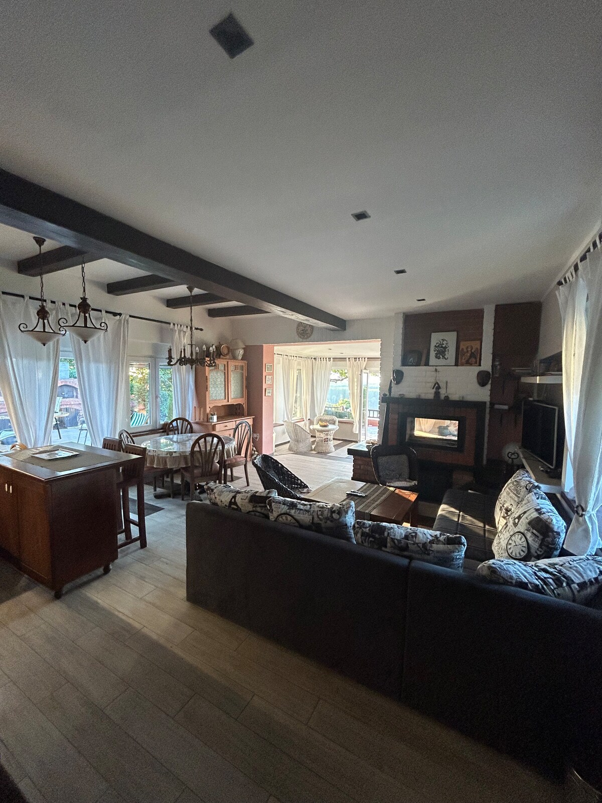 Kuca se nalazi u mirnom delu grada sa predivnim dvoristem, vrlo je prostrana sa velikim dnevnim boravkom i 4 spavace sobe. Svaka soba ima Tv i internet , kuhinja je funkcionalna i spremna za koriscenje, parking je obezbedjen