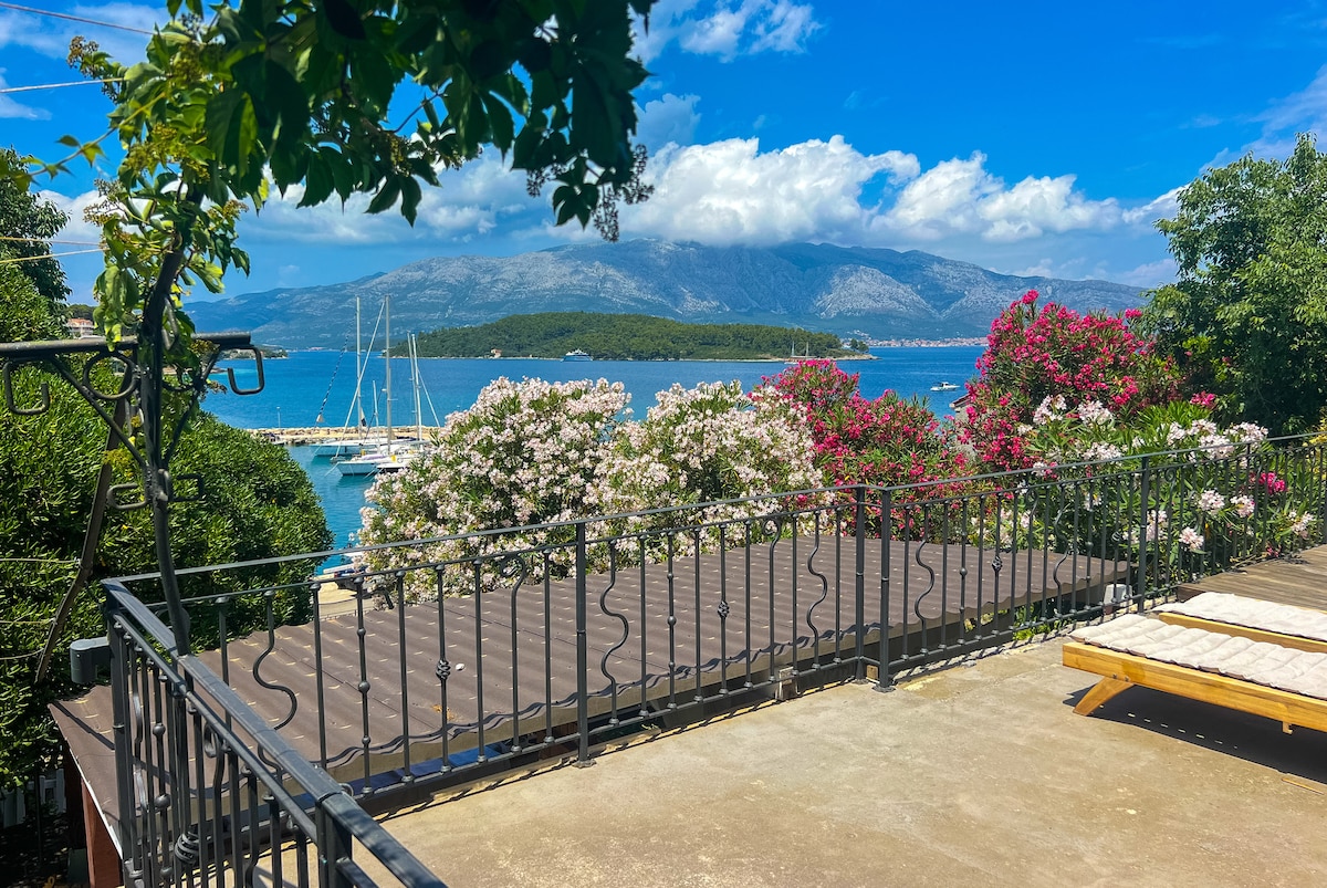 Bright and friendly, you will find our comfortable 60 m2 apartment. It is surrounded on both sides by a large outdoor balcons which lines the back of the house, to a densely vegetated forest. 500 m. from the quiet beach and 600 m. from visited beach. Walking distance to the beach and old town city center. Comfortable apartment close enough to everything but far enough so you can enjoy peace and privacy, is situated at the ideal point for you to explore Korcula island or just relax. Free parking