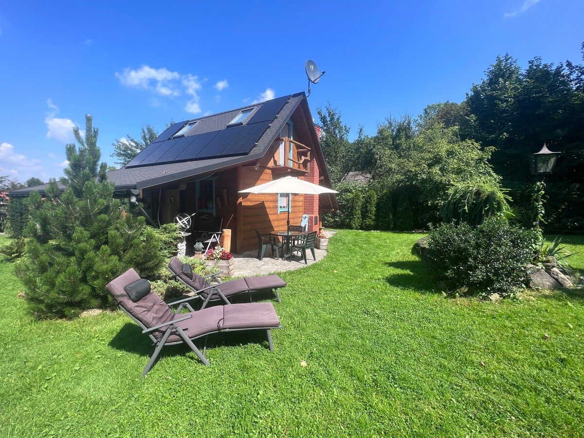 The "Lavender Corner" cottage in Żywiec. Welcome to Żywiec. We offer a cottage with a fenced garden for up to 4 people. On the ground floor there is a kitchen with a living room with a fold-out double sofa, TV and a bathroom. There are two bedrooms in the attic. There is a garden with a barbecue, a fireplace and a table for feasting and WiFi. The cottage is not adapted for people with disabilities. We are looking forward to your visit!